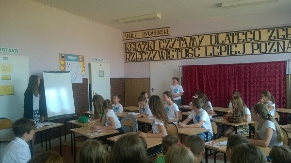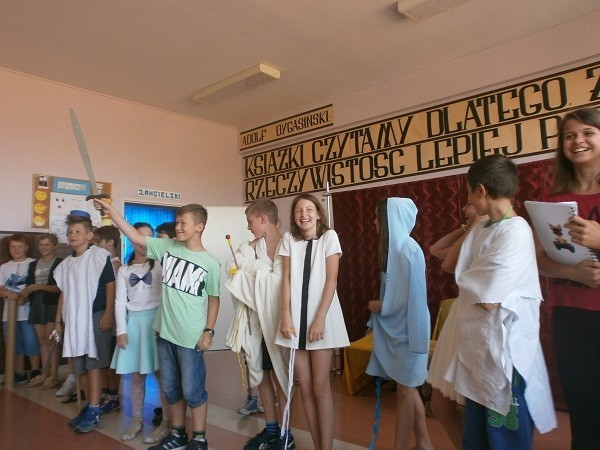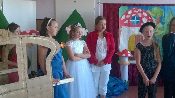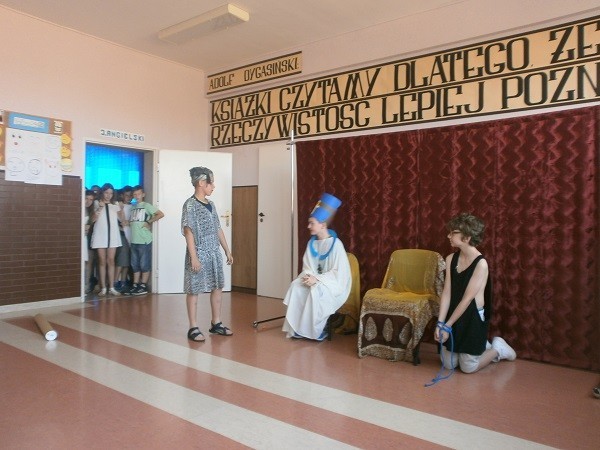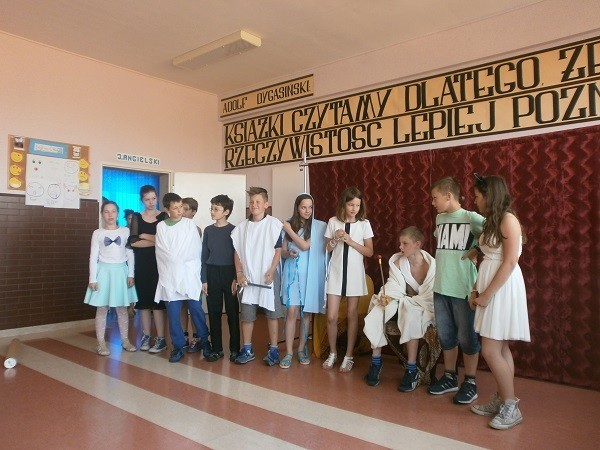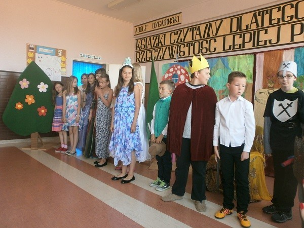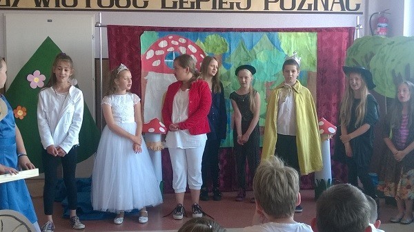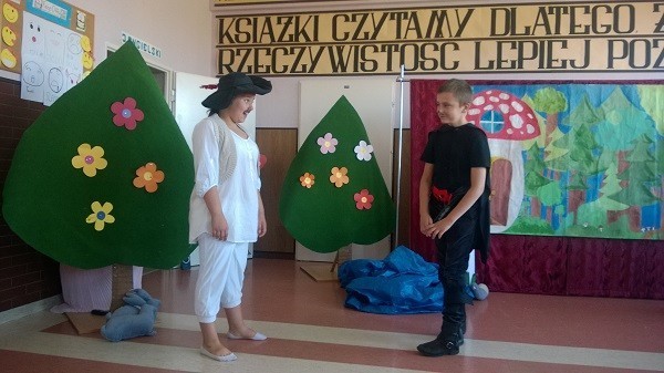 W dniach 9-10 czerwca w naszej szkole miało miejsce spotkanie z teatrem, które w tym roku odbyło się pod hasłem Zabawa w teatr. Uczniowie klas czwartych i piątych przygotowali pod okiem wychowawców spektakle o różniej tematyce. Największym powodzeniem cieszyły się inscenizacje baśni. Klasa 4a zaprezentowała Królewnę Śnieżkę, klasa 4b przygody Kota w butach, a 4c inscenizację baśni Ch. Andersena Świniopas. Klasa 5c w humorystyczny sposób przedstawiła co może wydarzyć się w baśniach kiedy zabraknie w nich postaci negatywnych przygotowujac przedstawienie Nie ma tego złego. Uczniowie klasy 5a natomiast sięgnęli do tematyki mitologicznej inscenizując Zemstę bogów. Piatoklasiści z klasy b ukazali sylwetki różnych typów uczniów w przedstawieniu Ananasy z naszej klasy. Wszystkie widowiska zostały przygotowane z ogromną starannością, zarówno o scenografię jak też o kostiumy i rekwizyty. Te dwa dni upłynęły w bardzo przyjemnej atmosferze. Każdy w tym czasie mógł zaprezentować swoje umiejętności aktorskie,a poźniej obserwować i oklaskiwać innych w tej roli.