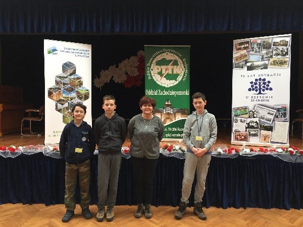 zabytków Polski i województwa. Nasz zespół pod opieką Jadwigi Piaseckiej, w składzie: Fabian Grodek, Bartosz Golińczak, Tomasz Skubisz zajął ósme miejsce na trzynaście zespołów w kategorii szkół podstawowych. Mimo niepogody w sobotnie popołudnie, wszyscy uczestnicy pojechali zwiedzać Stargardu razem z przewodnikiem. Galeria zdjęć –