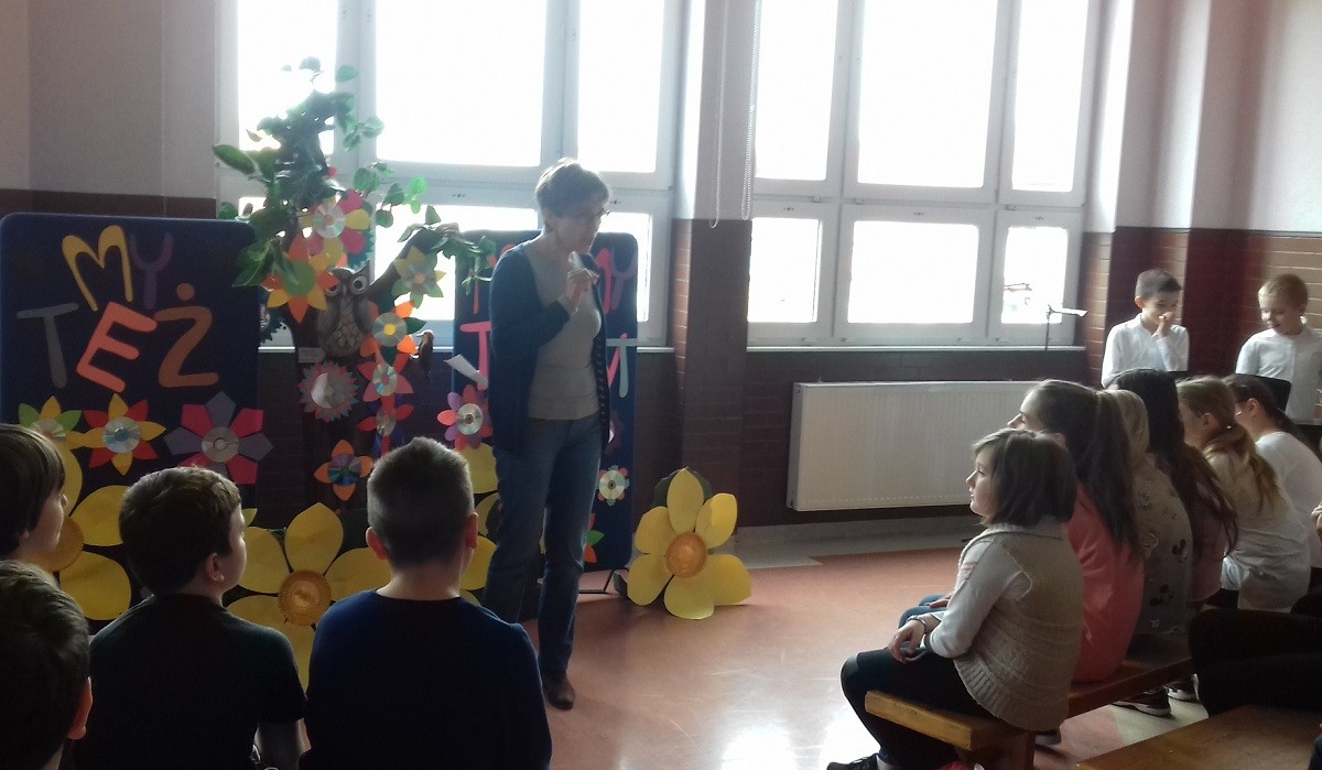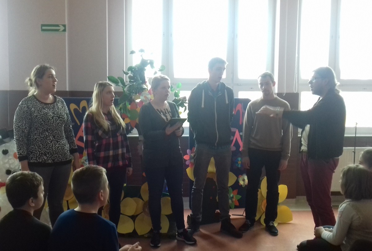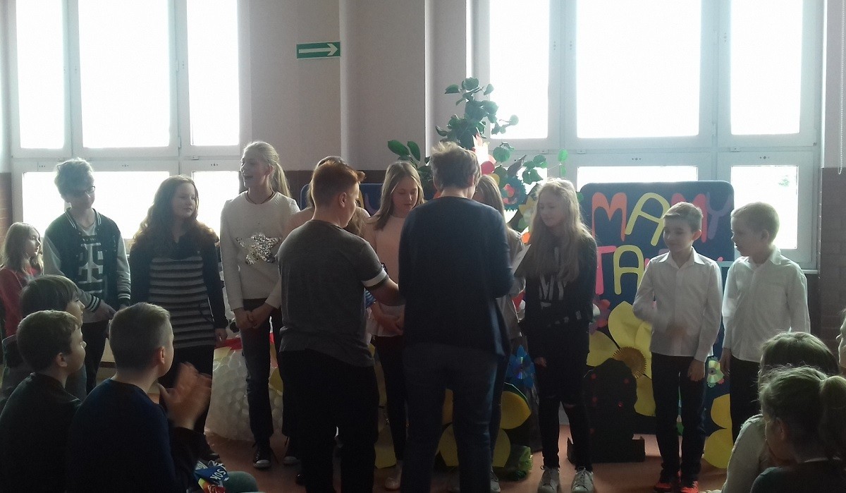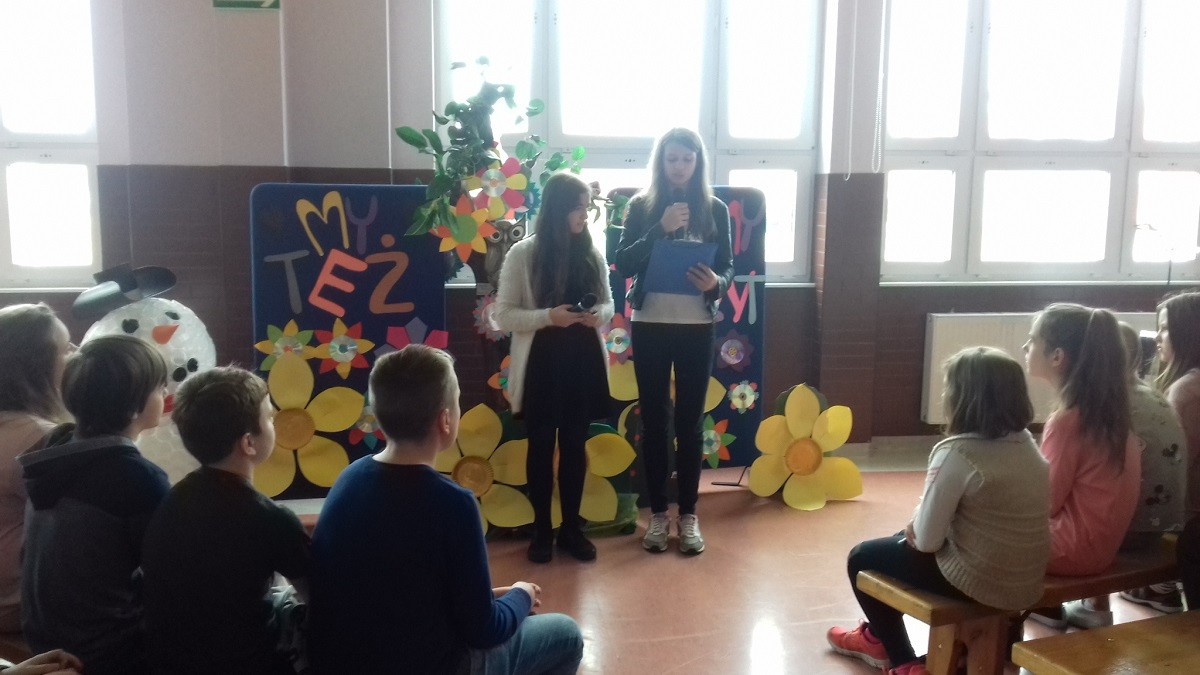 Klasy, które miały swoich przedstawicieli mogły ich zobaczyć. Na końcu wystąpili goście specjalni – Studenci Akademii Sztuki, którzy zaśpiewali ,,Goude Mater Polonie’’. Przegląd prowadziły Magdalena Wójcik oraz Maja Stępniak z klasy 6A. Nagrody otrzymali wszyscy uczestnicy ufundowane przez Radę Rodziców. Przegląd wygrał zespół ,,Łumi’’.