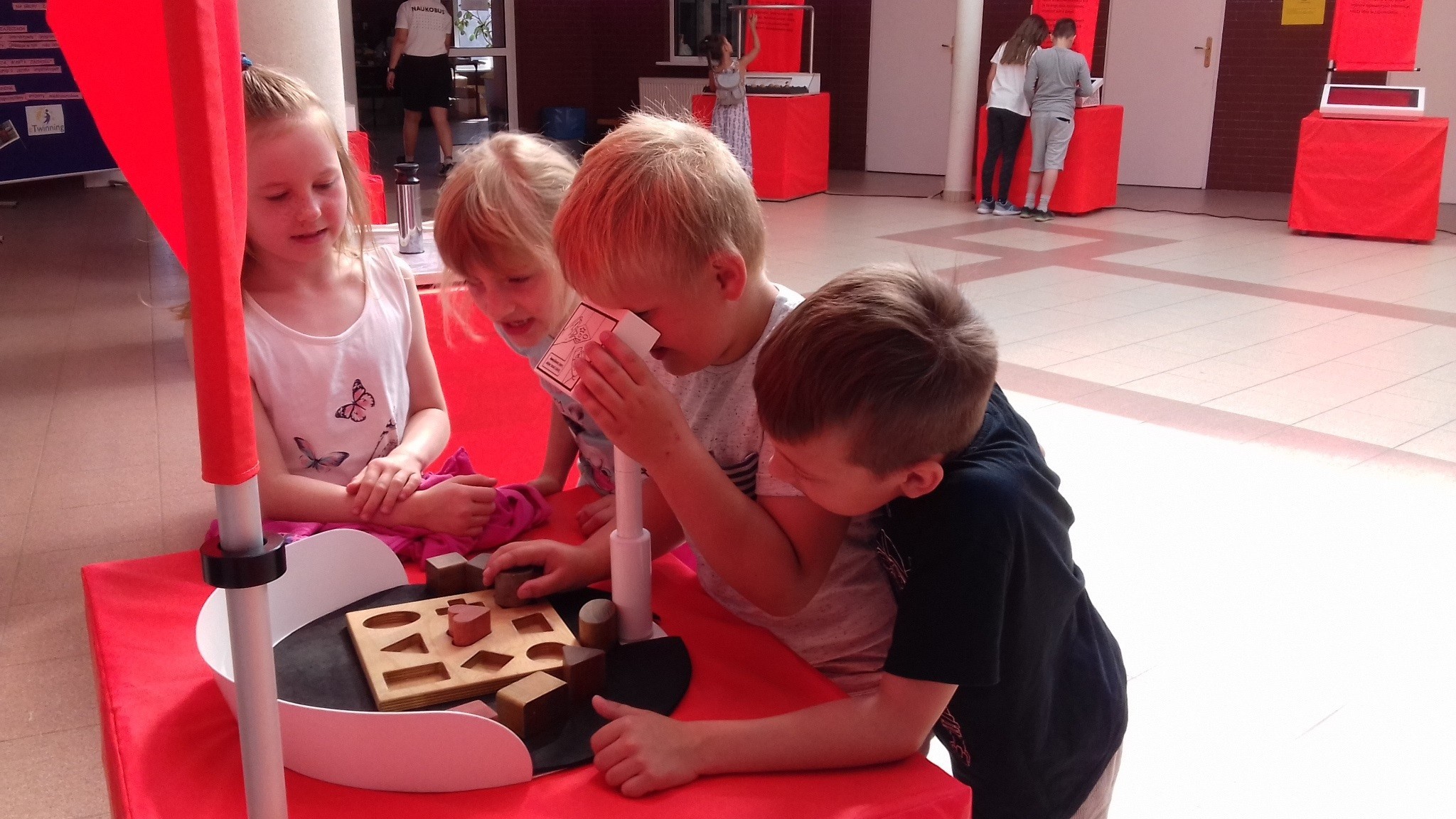 W czwartek 22 czerwca uczniowie Szkoły Podstawowej w Przecławiu zwiedzili interaktywną wystawę pt. „Umysł przyłapany” przygotowaną przez Centrum Nauki Kopernik. Razem z Naukobusem przyjechali eksperci – animatorzy, którzy objaśniali działanie eksponatów i opowiadali o zjawiskach naukowych. Wystawa składała się z piętnastu interaktywnych eksponatów, które można było dotknąć i przetestować. Uczniowie w ten sposób doświadczyli jak działają ich zmysły i mózg. Wystawa zachęciła wszystkich, aby wychodzić poza utarte ścieżki myślenia.