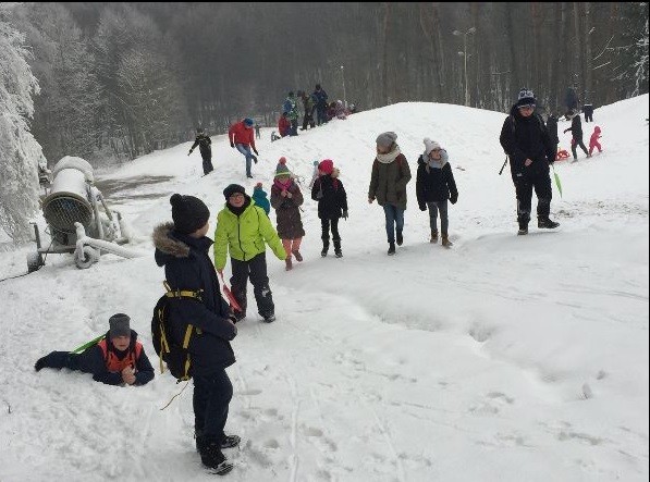 W sobotę 10 lutego uczestniczyliśmy w 970 Leśnej Sobocie po Puszczy Wkrzańskiej. Taki spacer po zaśnieżonym lesie pozytywnie wpływał na humor i kondycję, której nie zabrakło podczas zjazdów ze stoku Szczecińskiej Gubałówki na „jabłuszkach”. Nie obyło się bez wyścigów. Ja też uczestniczyłam w wyścigach. Opiekun Koła – Jadwiga Piasecka.