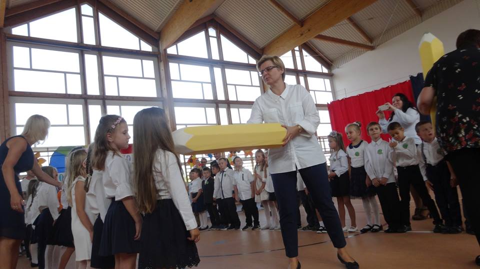 3 września 2018 r. w Szkole Podstawowej w Przecławiu uroczyście zainaugurowano rok szkolny 2018/2019. W uroczystości brali udział uczniowie, rodzice i zaproszeni goście. Wszyscy życzyli uczniom, wytężonej pracy, wielu wspaniałych osiągnięć i spełniania marzeń, a rodzicom dużo życzliwości i wsparcia dla swoich dzieci. Dodatkowo nowi uczniowie klas pierwszych brali udział w ślubowaniu i pasowaniu na ucznia. „Drodzy pierwszoklasiści, dzisiaj rozpoczynacie przygodę z nauką. Zanim jednak to nastąpi przystąpicie do ślubowania na pierwszoklasistę. Jestem przekonana, że ta uroczystość pozostanie na długo w waszej pamięci. To początek wielkiej przygody…” – tymi słowami starsze koleżanki zwróciły się  do pierwszaków, a następnie przypomniały im o ich przywilejach i obowiązkach. Chwilę później dzieci z czterech klas pierwszych, przystąpiły do aktu ślubowania i pasowania.  Zostali obdarowani przez panią wójt Małgorzatę Schwarz breloczkami.  Pierwszaki zaprezentowały się rodzicom i nauczycielom w zadaniach jakie otrzymały od swoich przyszłych nauczycieli. Dzieci odpowiadały na pytania, rozwiązywały zagadki, piły sok ,,mądrości’’  . Wszyscy zgromadzeni nie mieli wątpliwości co do tego, że swój pierwszy poważny egzamin pierwszaki zdały celująco. Najmłodsi uczniowie szkoły otrzymali zaś zapewnienie, że starsi koledzy zawsze będą służyć im pomocą. Chwilę później w sali gimnastyczne słychać było już tylko gromkie brawa wzruszonych rodziców i całej społeczności szkolnej. Po wykonaniu pamiątkowych zdjęć, uczniowie udali  się do swoich klas, gdzie czekała na nich niespodzianka w postaci kuferka matematycznego.