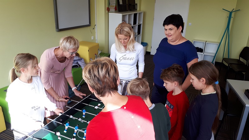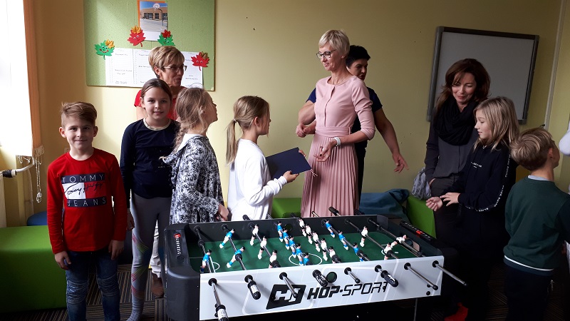 Nowa przestrzeń cieszy się wielkim zainteresowaniem uczniów, którzy chętnie spędzają w niej wolny czas. Wyposażona jest w sofy, pufy, piłkarzyki stołowe, gry planszowe i kalambury. Ostatnio dzieci gościły w nim przedstawicieli Rady Rodziców, Dyrekcję Szkoły i Wójta Gminy, rozmawiając o swoich potrzebach w zakresie dalszego wyposażenia. Wiele radości przysporzył wszystkim spontanicznie rozegrany turniej piłkarzyków, w