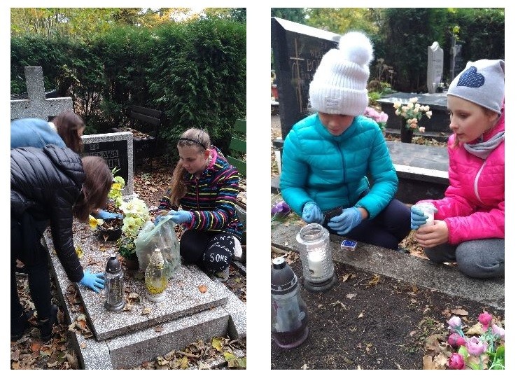 W okresie poprzedzającym święto Zmarłych, uczniowie ze szkolnego Klubu Wolontariatu pojechali na centralny cmentarz w Szczecinie. Uczniowie sprzątali najbardziej zaniedbane groby, udało się uporządkować 15 grobów. Coroczne sprzątanie mogił przed Wszystkimi Świętymi, jest staropolską tradycją, którą należy podtrzymywać, nie ograniczając się tylko do utrzymywania grobów swoich rodzin. Zanika potrzeba dbania i pamiętania o naszych przodkach. Szkoda. Jednak jest światełko w tunelu, uczniowie wyszli z propozycją, by na wiosnę znów powtórzyć akcję. Pamiętajmy o naszych zmarłych. Wieczny odpoczynek racz im dać Panie … Opiekun grupy – Jolanta Roman
