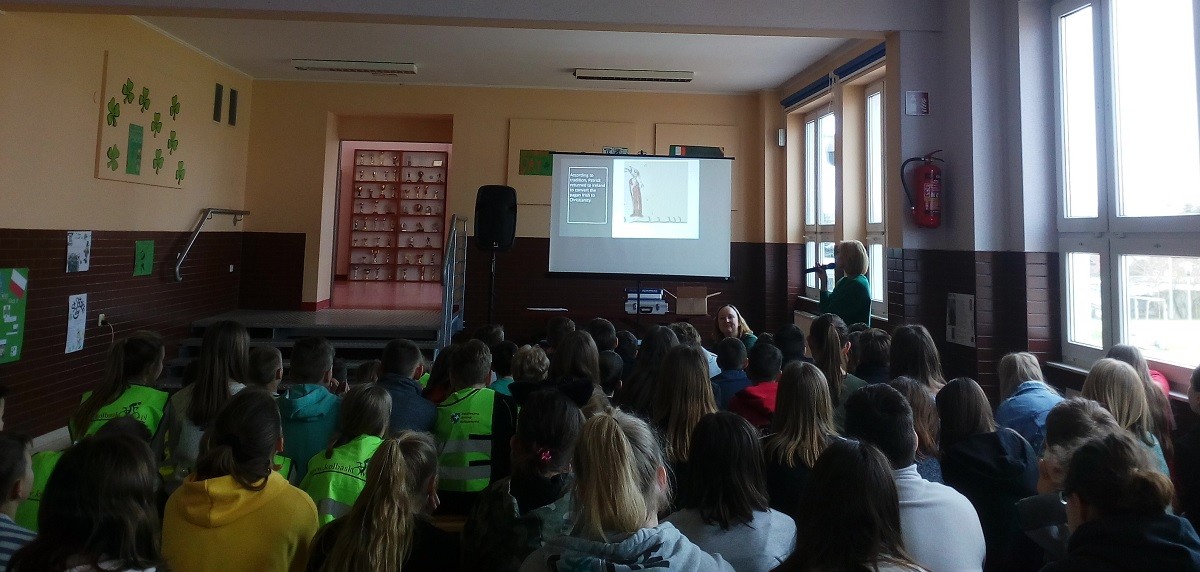 15 marca zazieleniła się cała szkoła. A to za sprawą Św. Patryka, patrona Irlandii Płd. Na wzór Irlandczyków, uczniowie ubrali się na zielono. Ściany ozdobione zostały przygotowanymi przez uczniów, przepięknymi plakatami a w czasie przerw można było sobie zrobić zdjęcie w mini fotobudce. Ale najważniejszy był pokaz multimedialny, z którego nasi uczniowie mogli dowiedzieć się ciekawostek na temat Dnia Św. Patryka. Dodać trzeba, że pokaz odbył się na podstawie prezentacji, która wygrała w zorganizowanym wcześniej konkursie. Dziękujemy naszym uczniom za zaangażowanie, a paniom anglistkom D. Kapcia, M. Kozieł i S. Rojek za organizację. Dzięki takim wydarzeniom, w szkole jest radośniej!