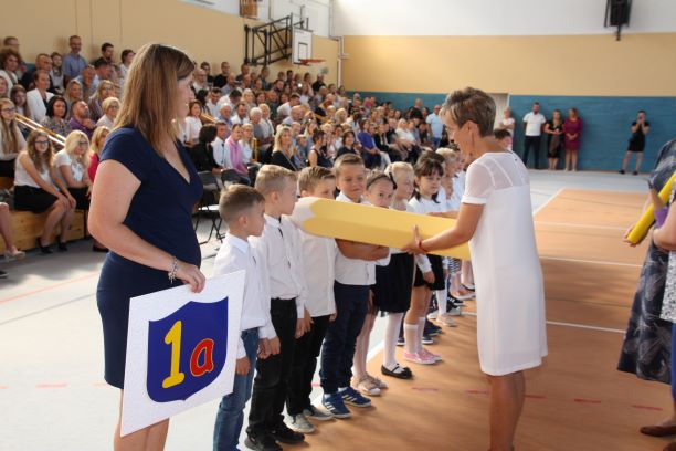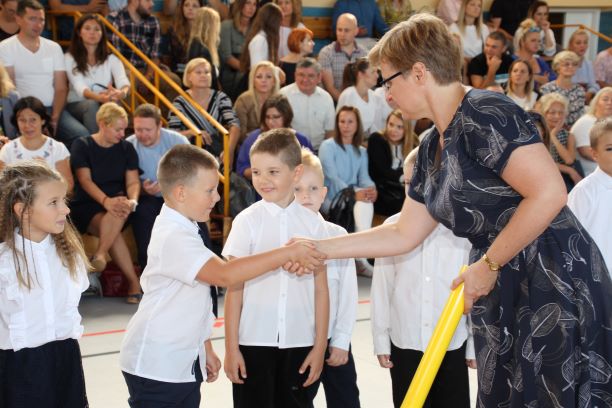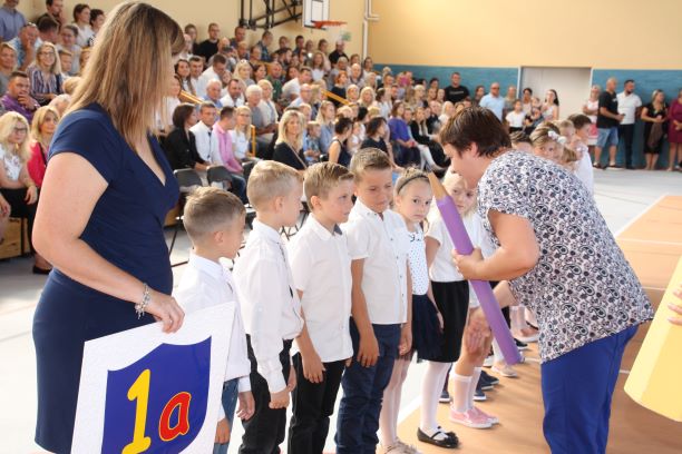 2 września 2019 r mury naszej szkoły po raz kolejny rozbrzmiały gwarem – nasi uczniowie wrócili z wakacji. Wśród nich pojawili się również nowicjusze. Pierwszoklasiści w towarzystwie swoich najbliższych, z dumą i zapewne obawą, po raz pierwszy przekroczyli próg naszej szkoły. Złożyli ślubowanie w obecności dyrekcji, władz gminnych, nauczycieli oraz rodziców. Zostali również uroczyście pasowani na uczniów. Tego dnia nasze szeregi powiększyły się o 5 klas  pierwszych. Mamy nadzieję, że ten dzień będzie dla Was miłym wspomnieniem. Witamy Was bardzo serdecznie…