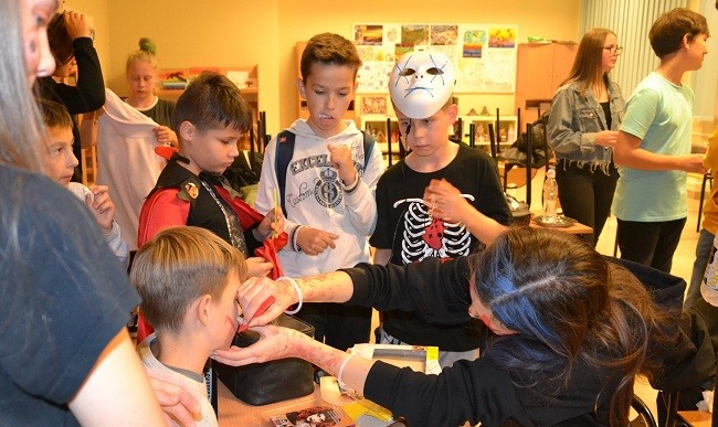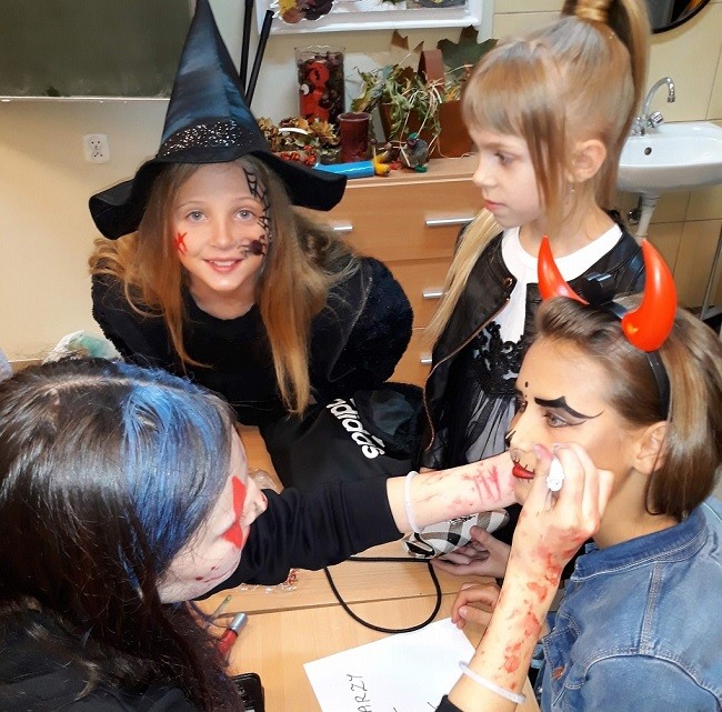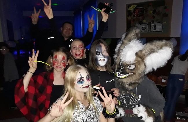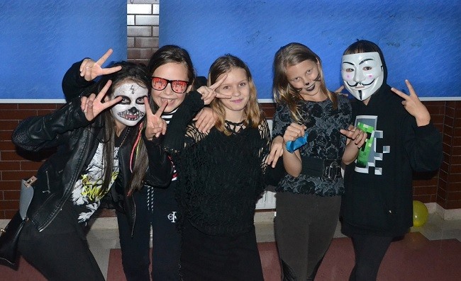 Halloween już niebawem, więc Samorząd Uczniowski, nie zwlekając, zorganizował dyskotekę w piątek 25 października. Dzięki wsparciu Rady Rodziców, która doinwestowała nasz sklepik, wszystkie stwory i duchy miały brzuchy pełne łakoci. Pozyskaną w ten sposób energię udało się spożytkować na radosne okrzyki oraz intensywne wybryki na parkiecie. Wszyscy, którzy nie zadbali o odpowiednie przebranie, mogli skorzystać z usług naszych fachowców od makijażu – za niewielką opłatą nanosili oni na twarze różne paskudności, które już po dyskotece podwyższały ciśnienie spacerującym mieszkańcom Przecławia. Grzegorz Wołowicz- opiekun SU.