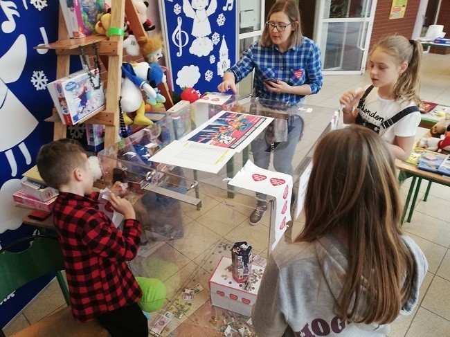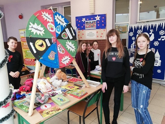 12 stycznia kolejny raz włączyliśmy się w akcję Wielkiej Orkiestry Świątecznej Pomocy. W tym roku, pierwszy raz w naszej gminie impreza odbyła się w Gminnym Ośrodku Kultury Sportu i Rekreacji. Jednak My, w naszej szkole, zaczęliśmy grać już w piątek! Na szkolnym korytarzu zainstalowano Kręciołę. Każda chętna osoba przyniosła „od serca” swoje niepotrzebne rzeczy (np. książki, zabawki, gry) i za niewielką opłatą mogła wymienić się z innymi na owoce, słodycze lub „przydasie”.