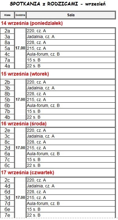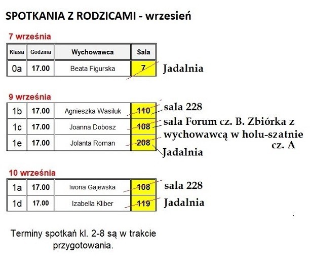 Informujemy o zaplanowanych spotkaniach wychowawcy z rodzicami. Plan spotkań –