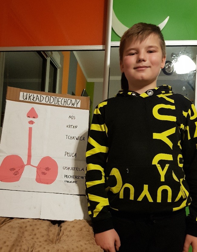 Uczniowie klas 4 wcielili się w rolę nauczyciela. Samodzielnie wykonali plakaty, modele wybranego układu w ciele człowieka, a następnie zaprezentowali opowiadając o jego funkcjach i budowie. Praca ta wymagała od nich wiele wysiłku i zaangażowania nieraz innych członków rodziny. Jednak efekty są zadziwiające. Gratulujemy odwagi i pomysłowości młodym talentom. Z niecierpliwości czekamy na kolejne wykonane projekty z ich udziałem. Anna Mazur