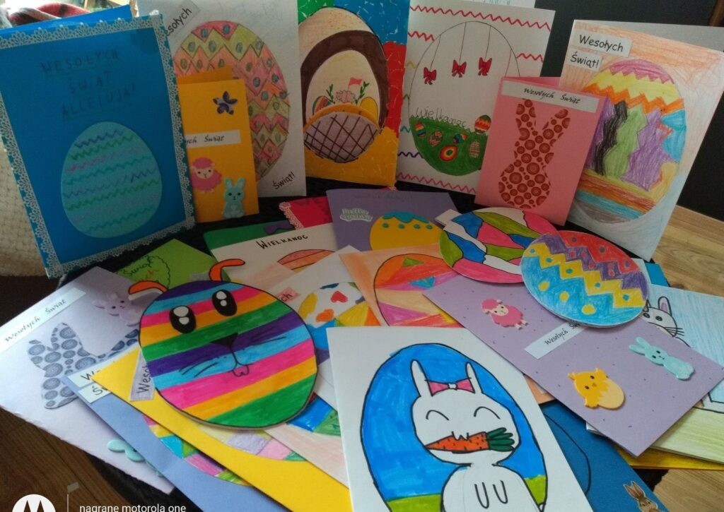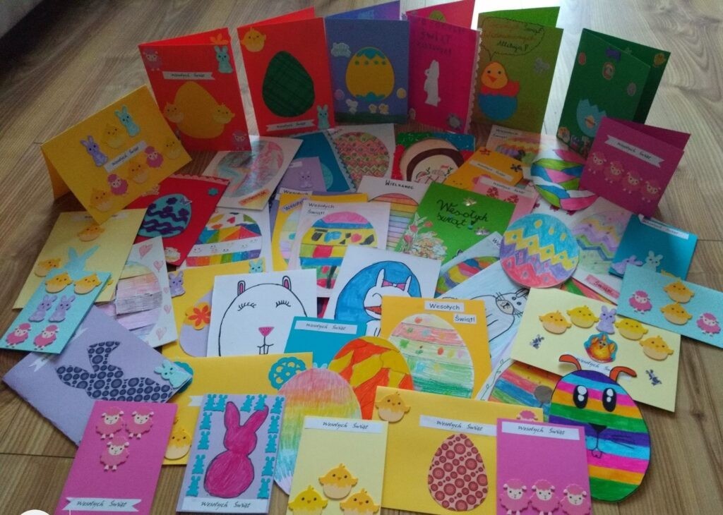 Uczniowie i uczennice klas trzecich wykonali świąteczne kartki, które zostaną przekazane osobom walczącym o wolną Polskę. Kartki, będą dołączone do Wielkanocnej Paczki dla Bohatera, akcji charytatywnej organizowanej na terenie całej Polski. Mamy nadzieję, że piękne życzenia i własnoręcznie wykonane kartki, sprawią ogromną radość naszym Bohaterom! Wychowawczynie klas trzecich