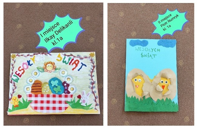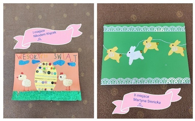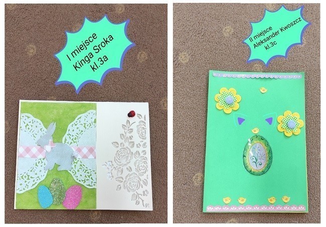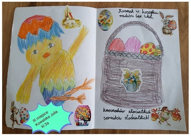 Przedstawiamy wyróżnione prace „Kartka Wielkanocna” w konkursie dla uczniów uczęszczających na świetlicę. Wszystkim dziękujemy za zaangażowanie, pomysł i kreatywność. Gratulacje! Wręczenie nagród, dyplomów i upominków pocieszenia nastąpi po naszym wspólnym powrocie. Galeria prac –