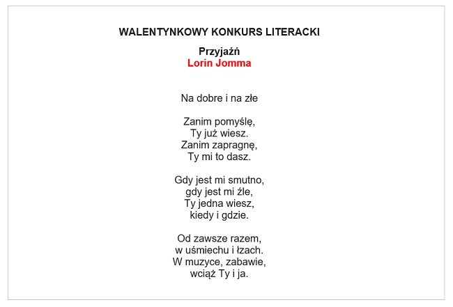 Konkurs Literacki Miłość i Przyjaźń – wyniki