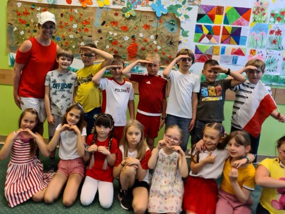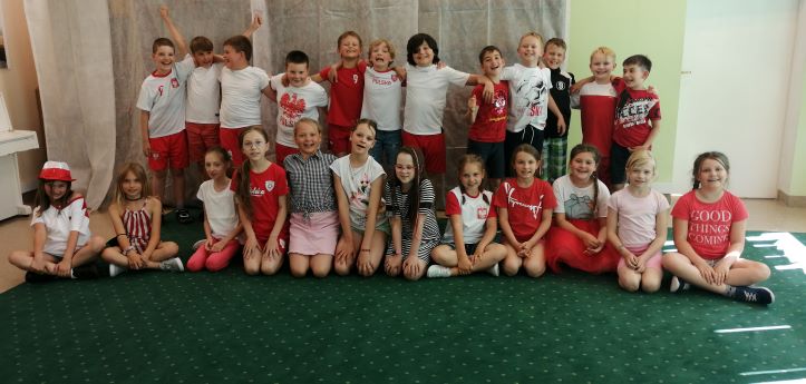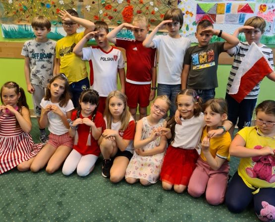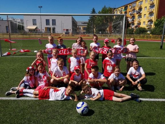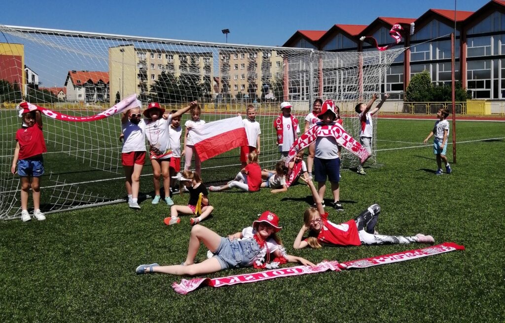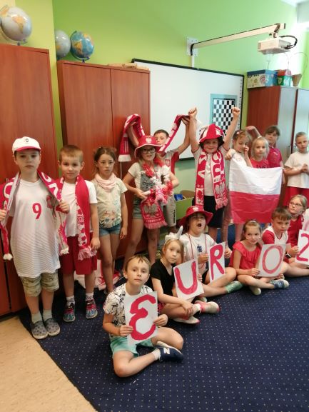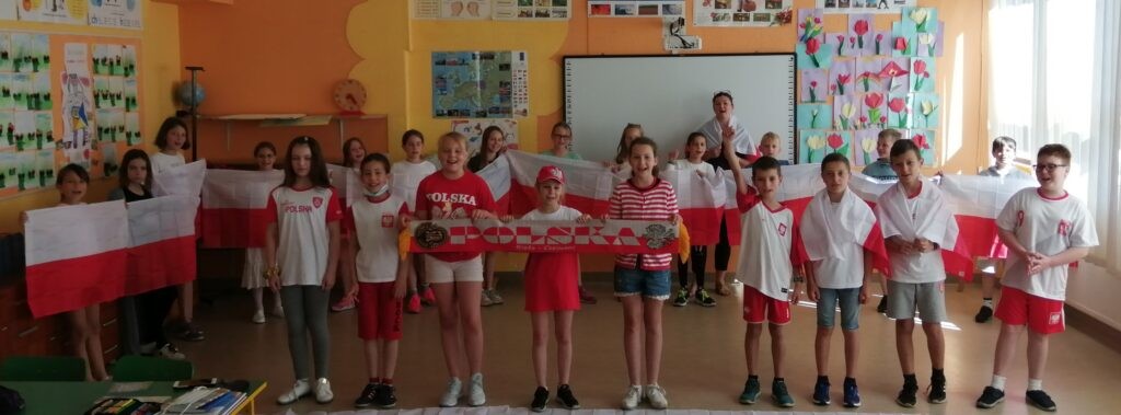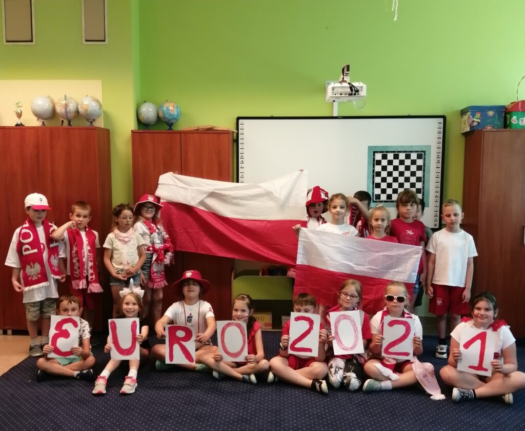 Dnia 14.06.2021r. uczniowie z klas 1-3 ubrali się na biało-czerwono, by kibicować naszym piłkarzom na Euro 21, w meczu Polska-Słowacja. Mecz zakończył się dla Polski niekorzystnym wynikiem. Może mali kibice z naszej szkoły pomogą wygrać w kolejnych spotkaniach? Nasze hasła: „Baczność do hymnu”, „Wierzymy w Was”, ” Wygracie”, „Polska biało-czerwoni”.