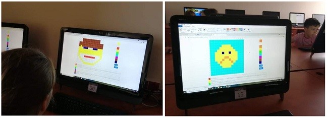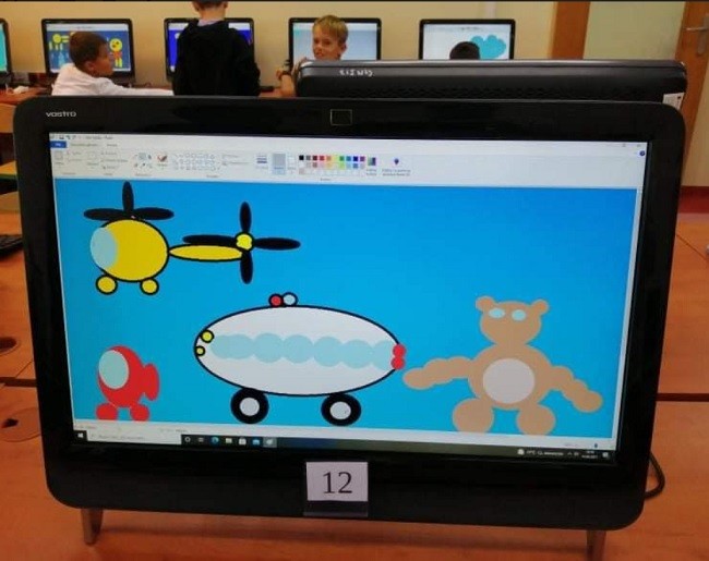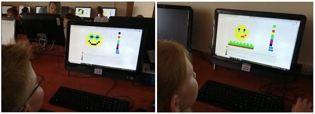 Nasi uczniowie klas czwartych na lekcjach informatyki tworzyli w programie graficznym według własnego pomysłu kompozycję wykorzystując jedynie kropki. Natomiast klasa 5c poznała historię „Od emotikon do emoji”. Szczególnie spodobało się uczniom wykorzystanie ich w reklamie i sztuce. McDonalds w swojej reklamie wykorzystał emotikony zamiast twarzy aktorów, co stworzyło ciekawy efekt, a z drugiej strony – dokładnie pokazało emocje bohaterów.