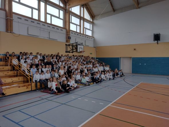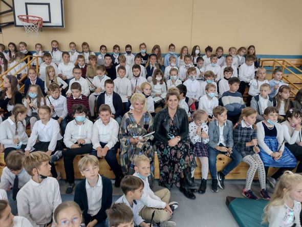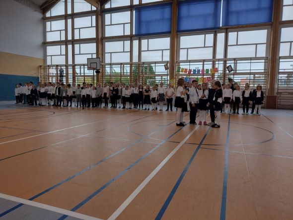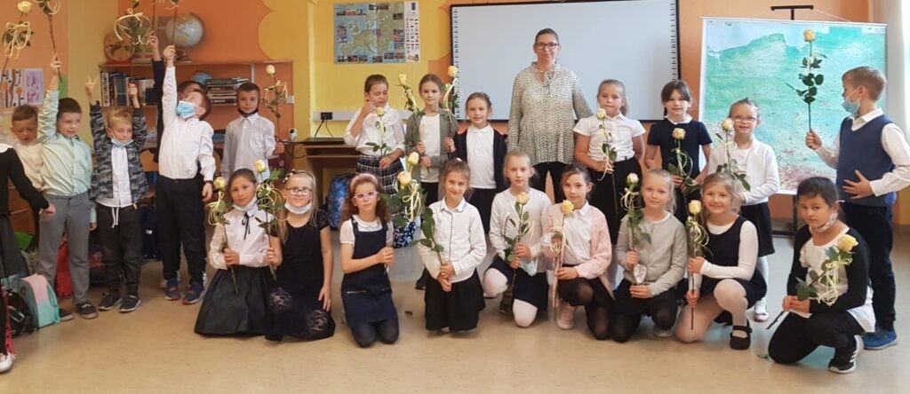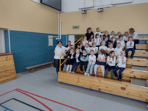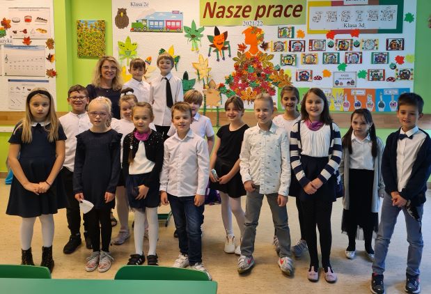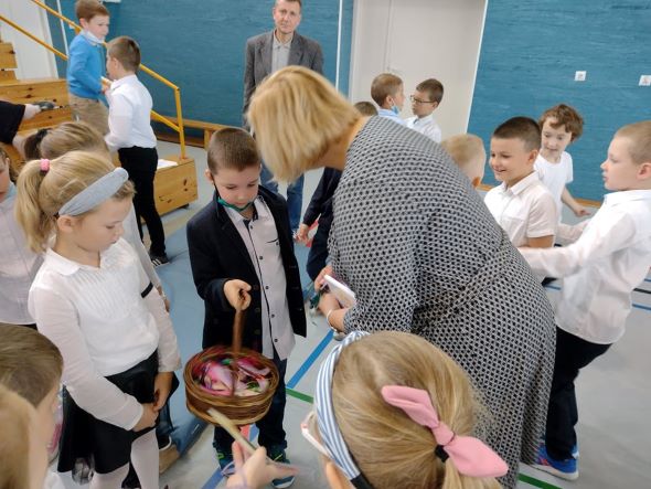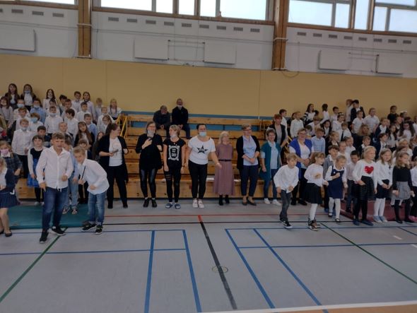 „Za oknem wiatr, liście spadają Z ich szumem wieści tu docierają Że w ten jesienny, kapryśny czas, Wiele świąt pięknych obchodzić czas”. Tymi nostalgicznymi słowami uczniowie klasy 3e powitali nauczycieli, pracowników szkoły oraz uczniów klas 0-3 przybyłych na Muzyczny Dzień Edukacji. Październik jest miesiącem obfitującym w różnego rodzaju święta, rozpoczyna się pięknym Międzynarodowym Dniem Muzyki, a niemal w samym jego środku obchodzimy Dzień Edukacji. Dlatego właśnie najmłodsi uczniowie naszej szkoły postanowili złożyć życzenia wszystkim pracującym w naszej szkole, a także podziękować za ich pracę śpiewem, grą na flażoletach i wspólnym tańcem. Każdy poziom klas pięknie zaprezentował się piosenką, były słodkie niespodzianki dla wszystkich przybyłych gości oraz dyplomy dla wychowawców klas 1-3. Bardzo dziękujemy właśnie im za doskonałe przygotowanie klas do występu. Nad sprawnym przebiegiem uroczystości czuwały panie Anna Chołodowska-Olędzka oraz Anna Pęciak. Na koniec jeszcze raz powtarzamy życzenia, które zostały wypowiedziane tego dnia: Chcemy Wam złożyć piękne życzenia by spełniły się Wasze marzenia, by dzieci zawsze grzeczne były i doskonale się uczyły.