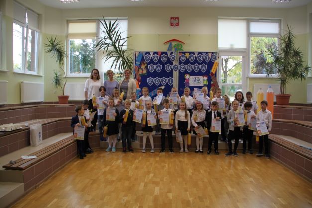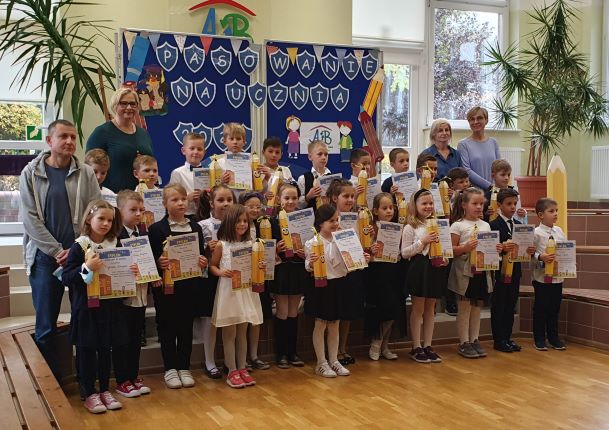 26 października 2021 r. w klasach 1a,1b,1c i 1d rozbrzmiewały słowa: „Ślubujemy naszej szkole, rodzicom i nauczycielom być solidnymi i pilnymi uczniami…”. Po ślubowaniu Pani Dyrektor dokonała symbolicznego aktu pasowania pierwszaków na uczniów naszej szkoły. Świadkami tego wydarzenia byli dumni ze swoich pociech rodzice oraz zaproszeni goście. Uczniowie otrzymali pamiątkowe dyplomy, smaczne rożki obfitości w kształcie ołówka, a po uroczystości pozowały do wspólnej fotografii. Uczniom klas pierwszych życzymy, aby wspólna nauka była wspaniałą przygodą i przynosiła im wiele radości. Trzymamy za Was kciuki, Powodzenia!
