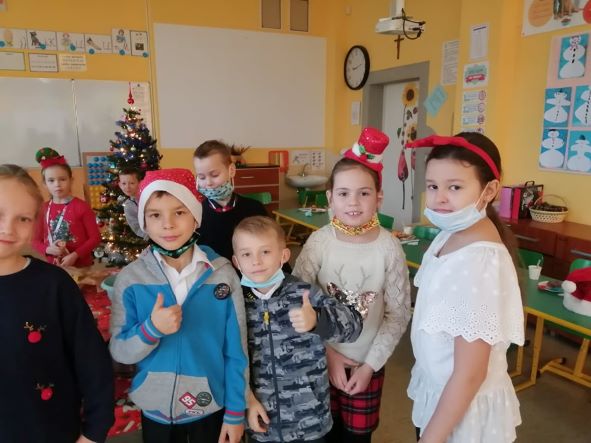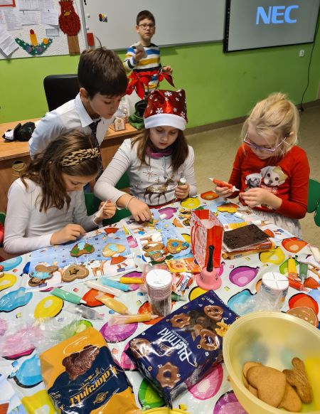 Dnia 17.12.21r. w klasach 1-3 odbyła się Wigilia. Nie zabrakło jedzenia. Było dzielenie się opłatkiem, śpiewanie kolęd, rozmowy na temat zwyczajów bożonarodzeniowych lub bajka świąteczna, a także przystrajanie pierniczków oraz zabawy prowadzone przez uczniów ze starszych klas. Wszyscy odświętnie ubrani. Dziękujemy rodzicom za pomoc w zorganizowaniu Wigilii.