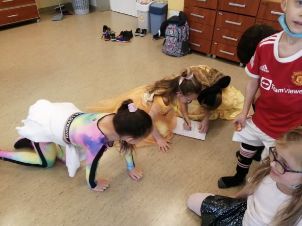 i wzbudziła u uczniów wiele radości. Rodzice zadbali o wspaniałe stroje i przebrania oraz pyszne przekąski i napoje. Dzieci wcieliły się w ulubione postaci, a Pani Agnieszka w odlotowego DJ-a. Zabawa dostarczyła uczniom i nauczycielom wiele emocji i radości, a muzyka zachęcała do tańca. Dzieci okazały się wspaniałymi tancerzami! Iwona Sawczuk i Agnieszka Wasiluk