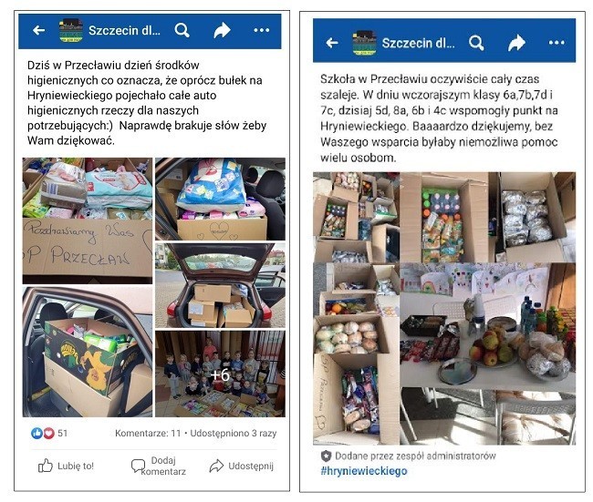 To niezwykle budujące, jak w tym trudnym czasie wszyscy się jednoczymy i dbamy o to, aby wsparcie trafiło do potrzebujących. Dodatkowo naszą pomoc rozszerzyliśmy o potrzebne rzeczy, np. poniedziałek był dniem przynoszenia kaszy i kaszek, we wtorek do kartonów wrzucaliśmy skarpety małe i duże, we środę makarony, we czwartek artykuły higieniczne a w piątek ryż. Przed nami dni konserw, produktów w słoiku i słodyczy!