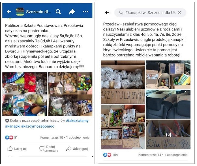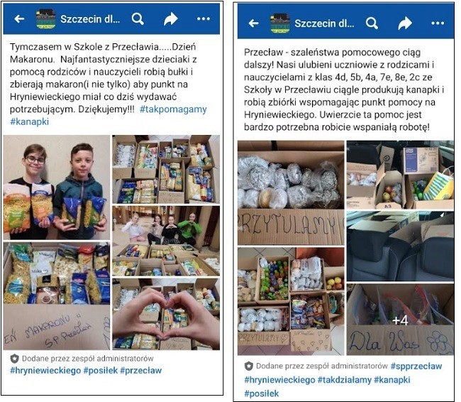 Całą akcję koordynuje rodzic-wolontariusz, Pani Ewelina Wazdrąg, która bezpośrednio komunikuje się z głównymi wolontariuszami w punkcie. Szkoła ustala z Nią harmonogram działań, wszystkie informacje o potrzebach są sprawdzone i żadna kanapka się nie zmarnuje. Nasza długofalowa pomoc ma duże znaczenie. Codziennie po każdej zbiórce na portalu fb Szczecin dla Ukrainy (#kanapki, #przecław) wrzucany jest post z podziękowaniami i zaproszeniem do dalszej współpracy.