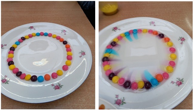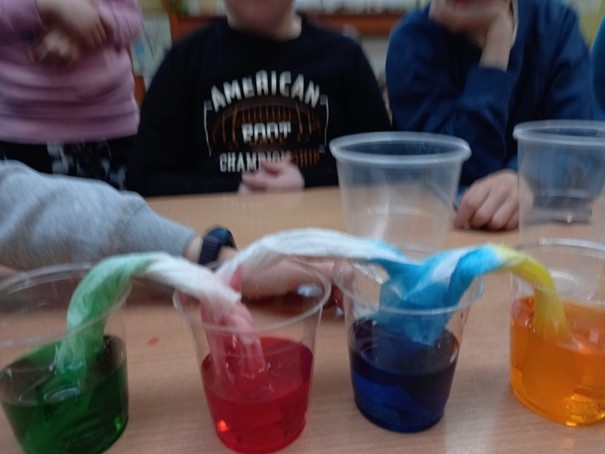 Ostatni tydzień marca w świetlicy związany był z pokazami ciekawych eksperymentów. Eksperymenty z użyciem produktów spożywczych dostępnych na co dzień w każdej kuchni, skupiły uwagę wszystkich świetliczków i stały się świetną okazją do pobudzenia wyobraźni, relaksu i nauki o prawach fizyki i chemii. Pokazom eksperymentów w wykonaniu wychowawców, towarzyszyła prezentacja tworzenia slimów (glutków) przez Alę i jej siostrę Lenę. Dziewczynki pokazały w jaki sposób robią glutki w warunkach domowych z użyciem mąki ziemniaczanej, płynu do prania , odżywki do włosów i kolorowych barwników. Slime stały się kolorowymi glutkami, które kochają dzieci i dorośli. Są świetnym sposobem na relaks i pobudzenie wyobraźni.