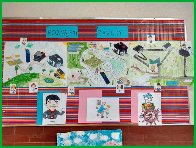 W ramach tego tygodnia uczniowie mieli okazję uczestniczyć w warsztatach zawodoznawczych realizowanych z Mapą Karier, odwiedzili interaktywne miasto zawodów i zaprojektowali swoje miasta zawodów. Dzieci również rozwiązywały quizy, zagadki i wykreślanki o zawodach. Podczas pogadanek o ulubionych zawodach, najbardziej popularnymi zawodami okazał się: weterynarz i piłkarz.