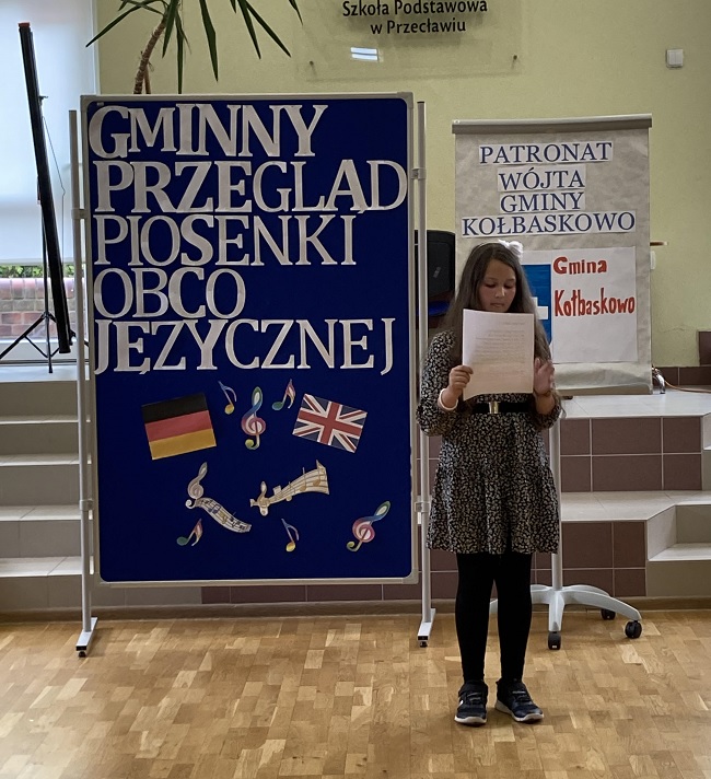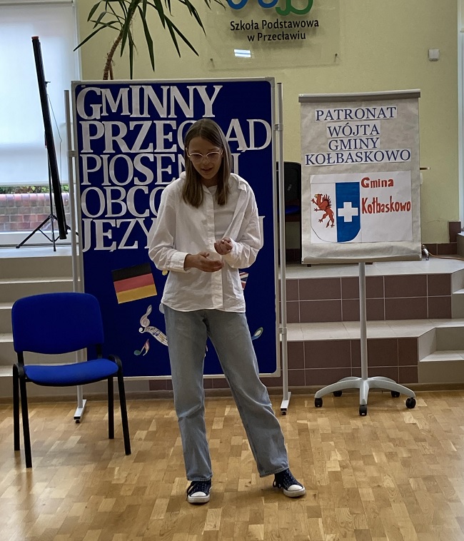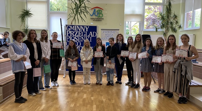 W poniedziałek 30 maja odbył się Gminny Przegląd Piosenki Obcojęzycznej pod patronatem Wójta Gminy Kołbaskowo. W konkursie wzięli udział uczniowie z naszej szkoły oraz ze szkoły w Będargowie. Było to święto muzyki i języków obcych. Większość piosenek było w języku angielskim, ale znalazł się również utwór w języku francuskim. Niektórzy uczniowie akompaniowali sobie własnymi instrumentami, gitarą i ukulele. I miejsce zdobyła Amelia Jabłońska z kl. 7c i ex equo Zuzanna Blezień z kl. 7a, II miejsce Kinga Sroka z kl. 4a, III miejsce Marta Lenc ze Szkoły Podstawowej w Będargowie. Wszystkim uczniom gratulujemy, poziom był bardzo wysoki. Do zobaczenia za rok! Organizator, Magdalena Kozieł.