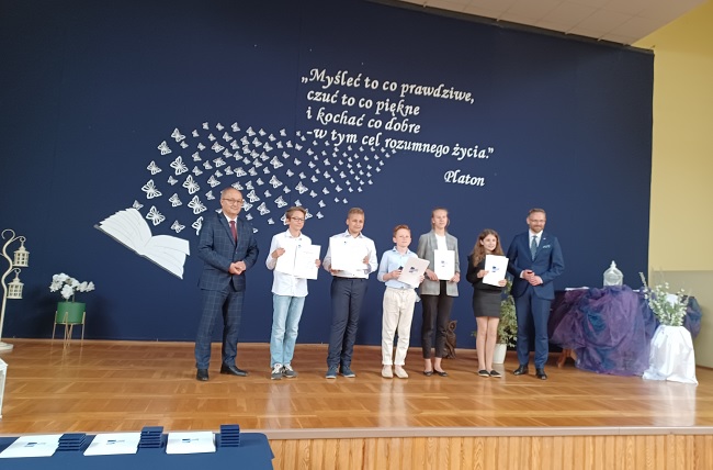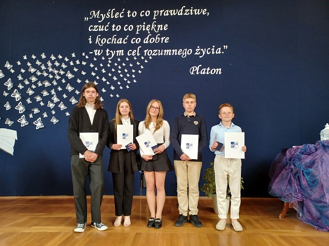 14 czerwca 2022 r. w Szczecinie odbyła się uroczystość podsumowania konkursów przedmiotowych organizowanych w roku szkolnym 2021/2022 przez Zachodniopomorskiego Kuratora Oświaty. W 10 konkursach przedmiotowych w etapie szkolnym wzięło udział 23 796 uczniów szkół podstawowych z całego województwa zachodniopomorskiego. Do etapu III, wojewódzkiego, zakwalifikowało się 1257 uczniów, a następnie wyłoniono 217 laureatów. Wśród nich jest pięcioro uczniów Szkoły Podstawowej w Przecławiu. Jest to najlepszy wynik w historii naszej szkoły. Są to: Aleksandra Konstanty – matematyka, Weronika Mischke i Marcin Marewski – język angielski, Mateusz Filak – wiedza o społeczeństwie i Olaf Prusinowski – język niemiecki. Nasi najlepsi uczniowie otrzymali dyplomy i medale od Zachodniopomorskiego Wicekuratora Oświaty oraz Wojewody Zachodniopomorskiego. GRATULUJEMY!