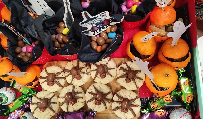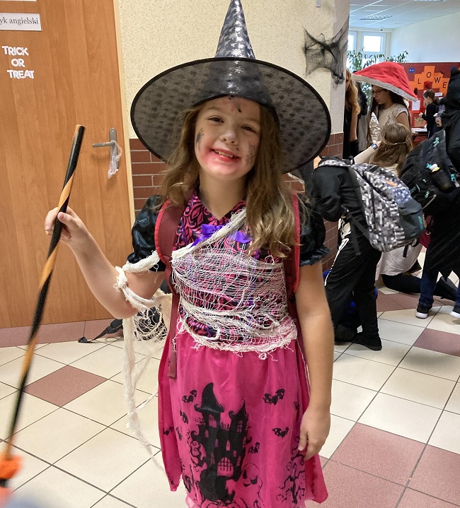 Piątek 31 października 2022 r. zdecydowanie różnił się od typowego szkolnego dnia. Mrocznymi korytarzami snuły się wampiry, czarownice, zombie i inne straszydła. A to za sprawą Samorządu Uczniowskiego, który wspólnie z Paniami Anglistkami przygotował wiele atrakcji. Odbył się kiermasz ze strrrrrasznie pysznymi słodkościami (nasi uczniowie i ich rodzice to naprawdę zdolne bestie) oraz konkurs na najlepszy strój. Z przykrością stwierdzamy, że przebrania były tak fajne, że nie byliśmy w stanie wyłonić zwycięzcy. Ale nie martwcie się, najlepiej przebranych czeka miła niespodzianka! Cieszymy się, że w tym dniu uczniowie mogli wesoło spędzić czas i oderwać się od szarej szkolnej rzeczywistości. Happy Halloween!!! Organizatorzy: Samorząd Uczniowski wraz z Opiekunami, Nauczyciele języka angielskiego.
