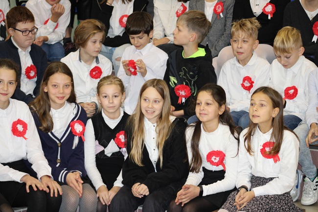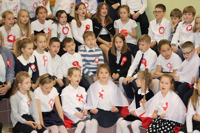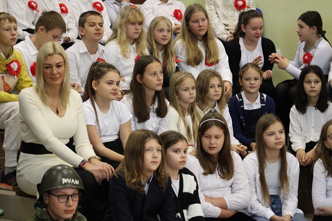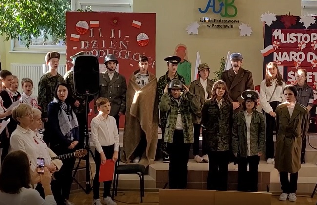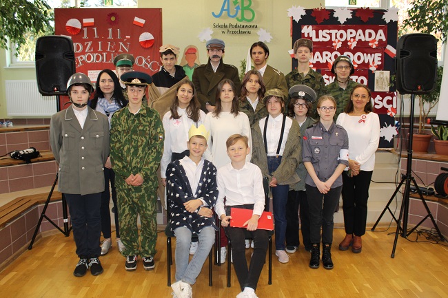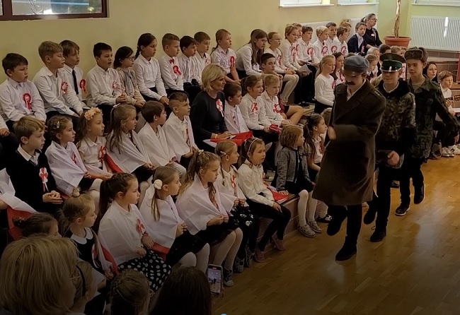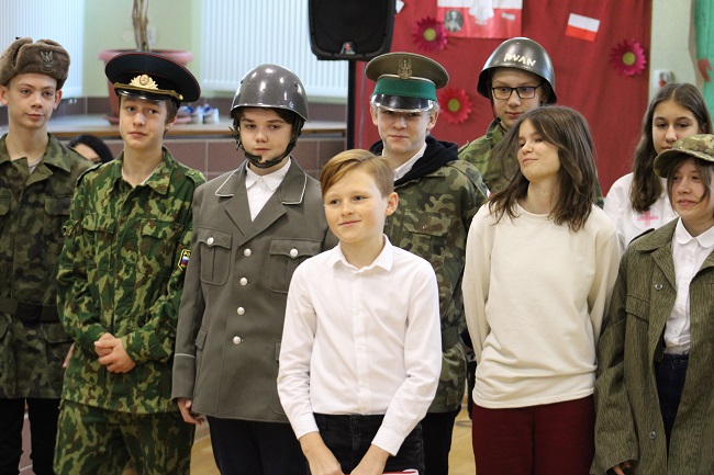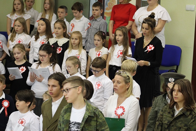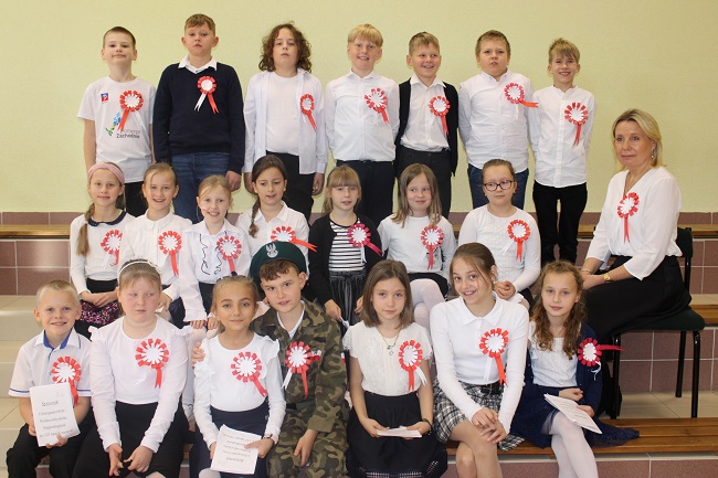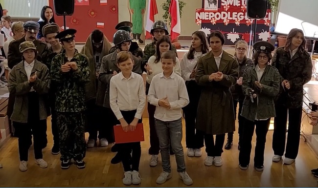 Narodowe Święto Niepodległości jest obchodzone co roku 11 listopada dla upamiętnienia rocznicy odzyskania niepodległości przez Naród Polski. Dzień 11 listopada przypomina nam, że wolność raz zdobyta i niepodległość raz osiągnięta, nie są dane na zawsze. 10 listopada 2022 r w naszej szkole odbyła się uroczystość upamiętniająca 104 rocznicę tego święta. Z tej okazji uczniowie klasy 8b przygotowali krótkie przedstawienie teatralne , do którego tekst pisany wierszem napisali Olaf Prusinowski i Janek Żabski. Uczniowie z aktorskim zacięciem prezentowali dzieje narodu polskiego podczas zaborów , wypełnionego wieloma zrywami patriotycznymi oraz walkę o wyzwolenie aż do dnia, gdy po 123 latach niewoli odzyskaliśmy niepodległość. Przekazane treści były przeplatane pieśniami patriotycznymi, wykonywanymi przez wszystkich uczniów naszej szkoły.