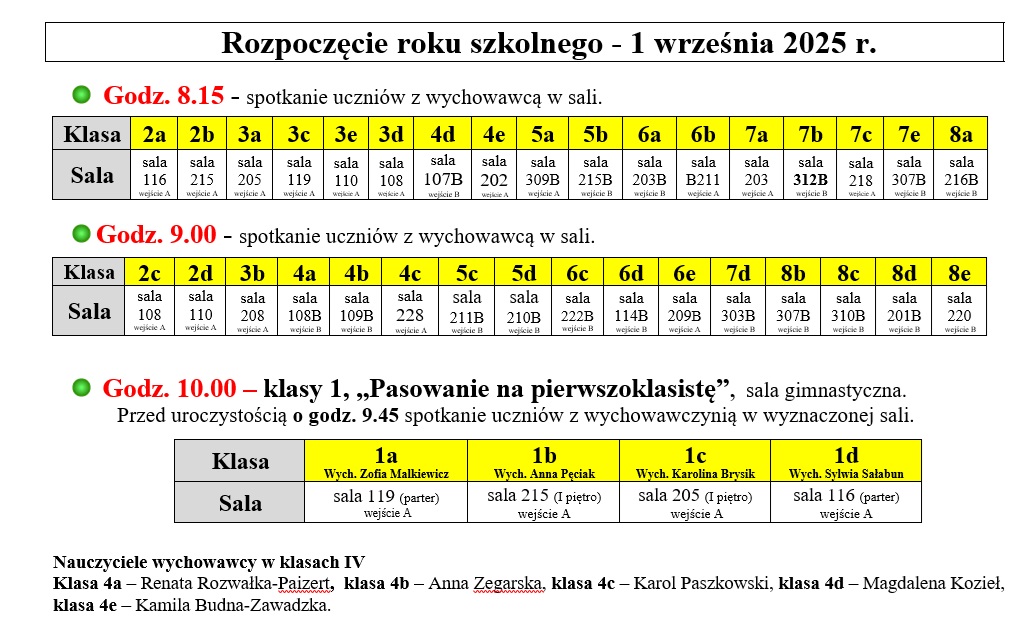 Informujemy, że rozpoczęcie roku szkolnego 2025/2026 odbędzie się 1 września 2025 r. (poniedziałek). Zapraszamy uczniów do wyznaczonych sal na spotkanie z wychowawcami. Plan spotkań –