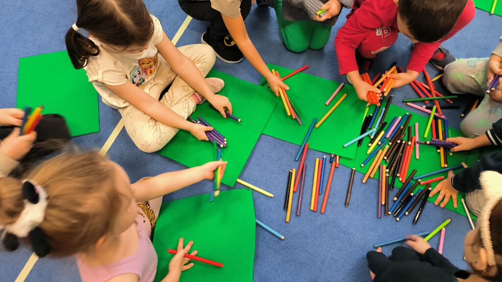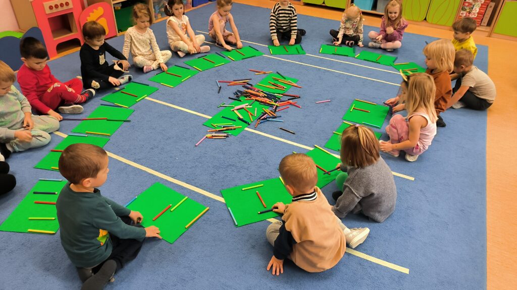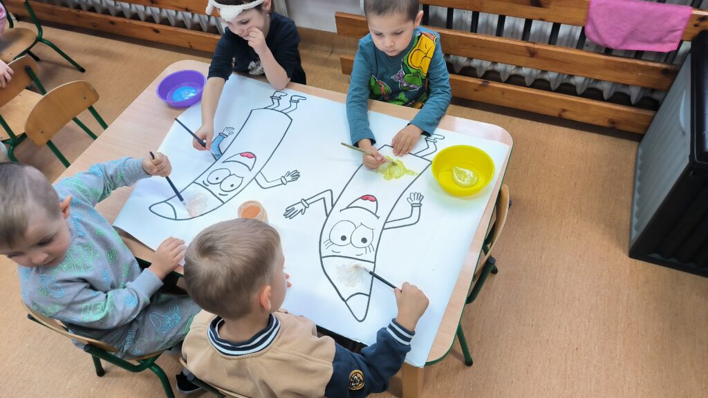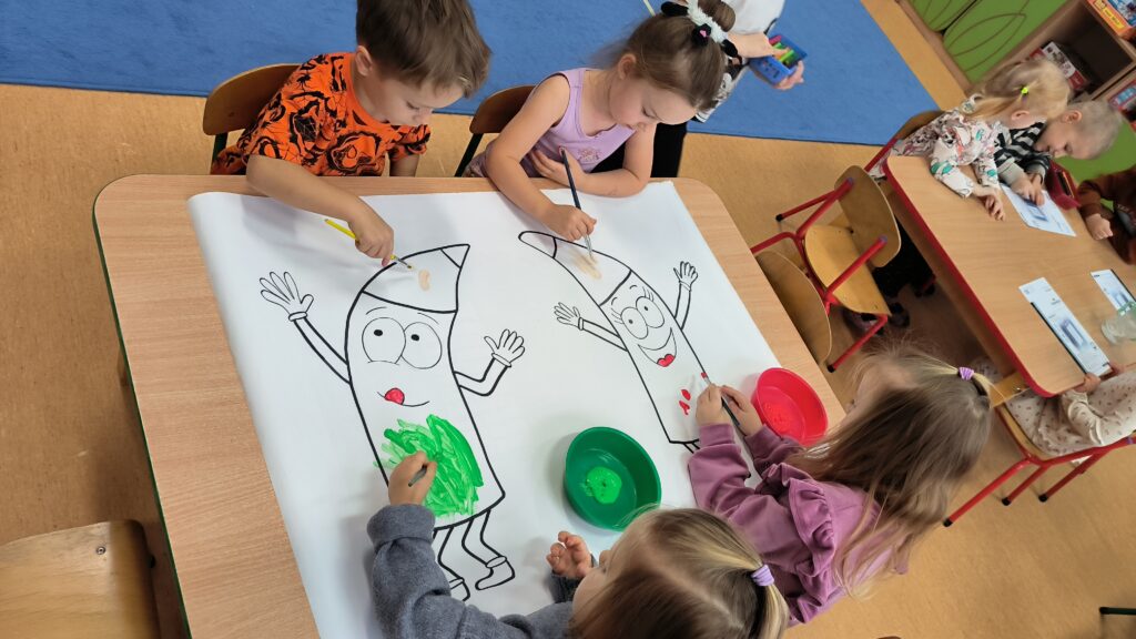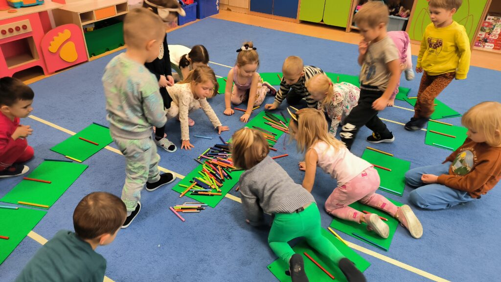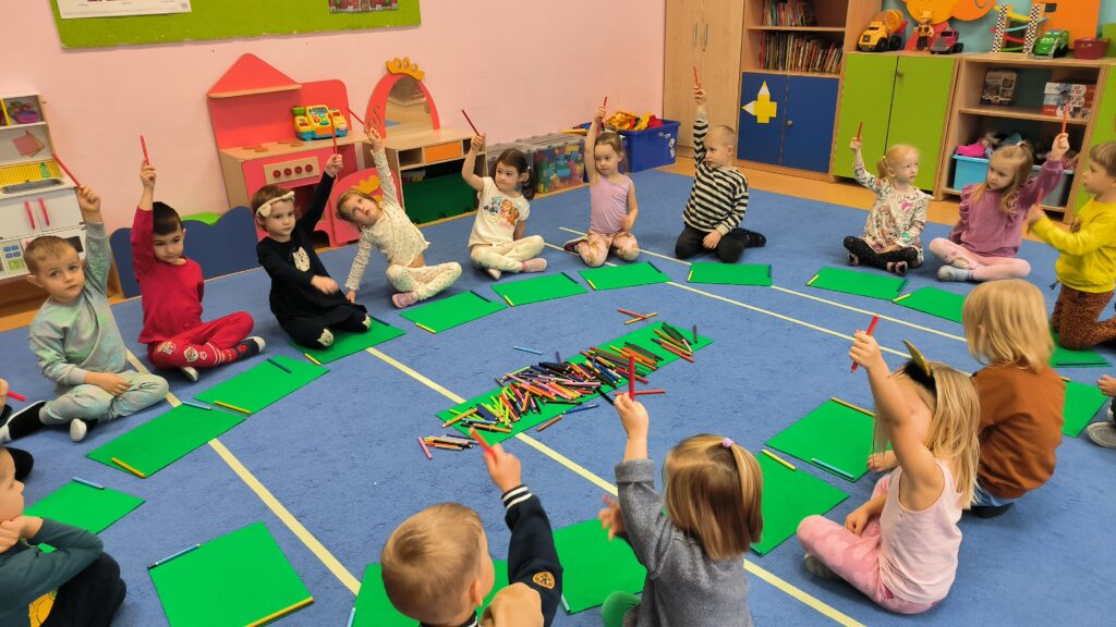 22 listopada w naszym przedszkolu świętowaliśmy Dzień Kredki – jedno z najbardziej kolorowych świąt w roku! 🌈Tego dnia dzieci poznały różne rodzaje kredek i dowiedziały się, jak powstają. Przedszkolaki chętnie opowiadały o swoich ulubionych kolorach, a następnie wspólnie odkrywaliśmy, że każda kredka – tak jak każdy z nas – jest wyjątkowa i potrzebna, bo razem tworzymy piękną całość.Kredki stały się również bohaterami zajęć matematycznych – służyły do liczenia, klasyfikowania i porównywania. Dzieci układały je według kolorów i długości, tworzyły zbiory, przeliczały elementy, a nawet rozwiązywały proste zadania matematyczne. W ten sposób nauka matematyki zamieniła się w ciekawą, kolorową zabawę.Nie zabrakło także zagadek, zabaw muzyczno–ruchowych i oczywiście twórczych prac plastycznych. Przedszkolaki rysowały, kolorowały i tworzyły prawdziwe dzieła sztuki. W salach zrobiło się bajecznie kolorowo, a uśmiechy na twarzach dzieci mówiły same za siebie. Dzień Kredki przypomniał nam, że świat z kolorami – i matematyką – jest dużo piękniejszy! 💛💚💙❤️