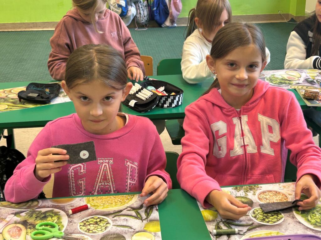Dnia 06.10.2025r. klasa 3b brała udział w warsztatach krawieckich. Uczniowie poznali guziki z dwoma i czterema oczkami oraz umiejętność nawlekania igły, a także różne sposoby przyszywania guzików. Oczywiście była pogadanka o bezpieczeństwie. Wszystkim bardzo się podobało. Niektórzy wzięli do domu kawałki filcu, by poćwiczyć. Następne warsztaty to „Poduszeczka na igły”. Wychowawca J. Roman