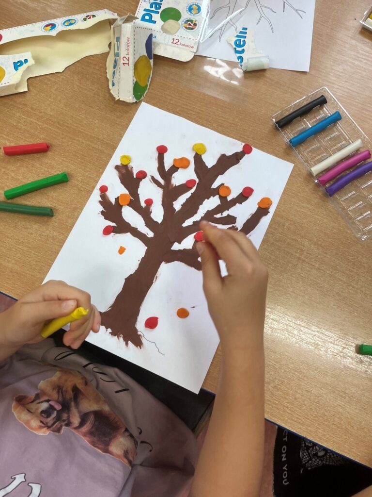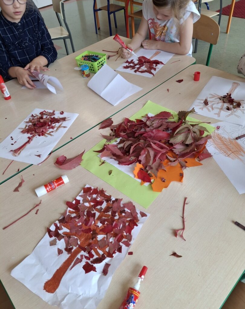 W czwartym tygodniu września świetliczaki powitały jesień. Na zajęciach świetlicowych omówiono zmiany w przyrodzie związane z kolejną porą roku, dzieci przyniosły dary jesieni. Kolorowa jesień zagościła w pracach plastycznych tworzonymi różnymi technikami.