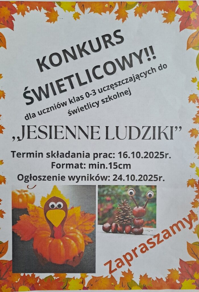W związku z jesienią ogłoszono konkurs świetlicowy.