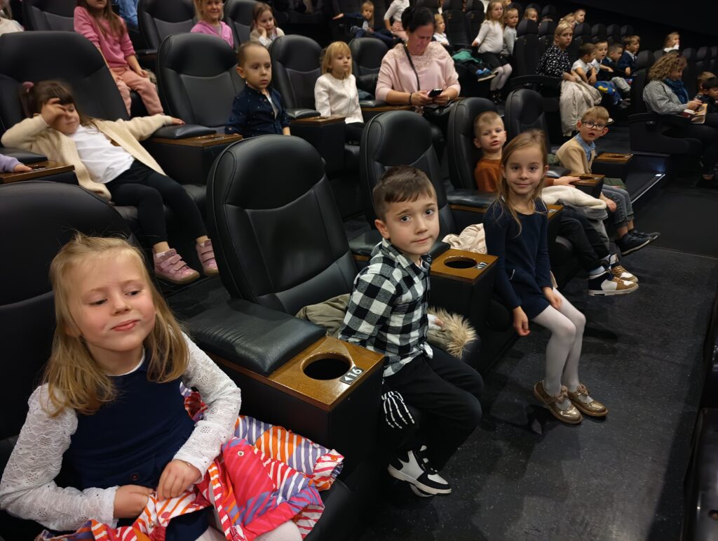 W dniu 29.10.2025 r. przedszkolaki obejrzały w Multikinie Galaxy przedstawienie teatralne pt. „Pinokio”. Spektakl opowiadał o przygodach drewnianego pajacyka, który marzył o tym, by stać się prawdziwym chłopcem. Dzieci z zaciekawieniem śledziły losy Pinokia, poznając jego błędy i dobre uczynki. Dowiedziały się, jak ważne są prawdomówność, uczciwość, pracowitość oraz szacunek do rodziców i innych ludzi. Przedstawienie dostarczyło przedszkolakom wielu emocji, radości i cennych refleksji, a wspólny wyjazd był doskonałą okazją do przeżycia pięknej teatralnej przygody.