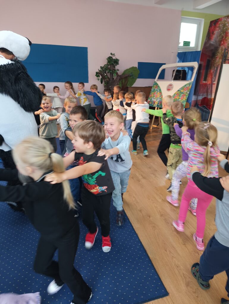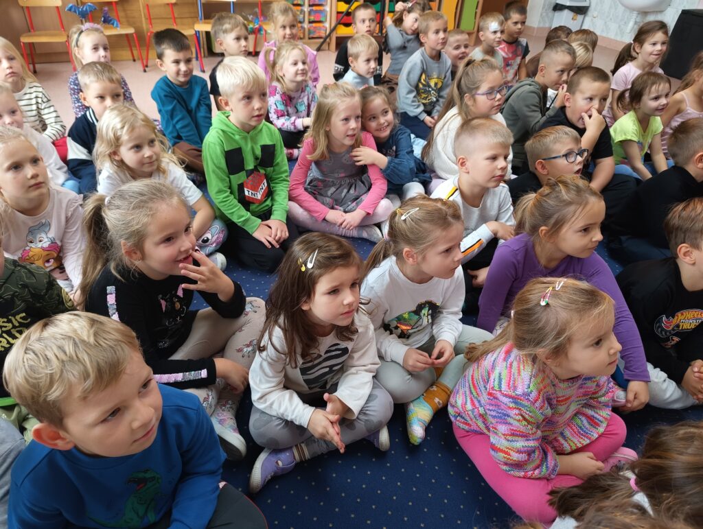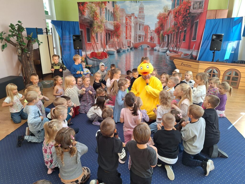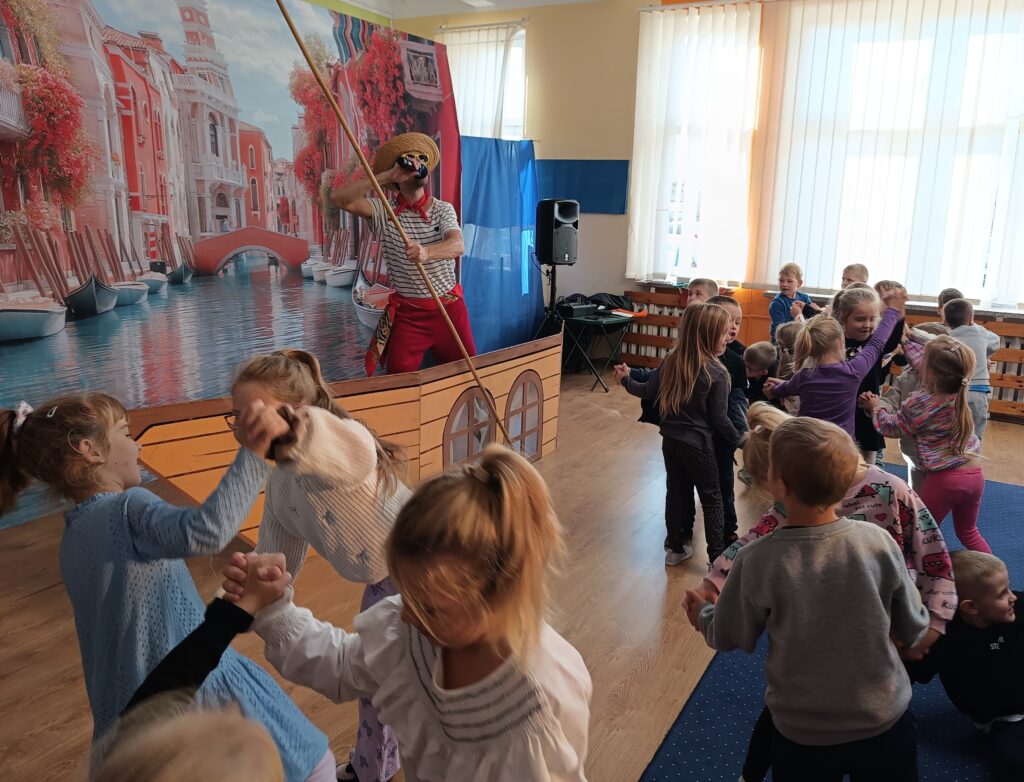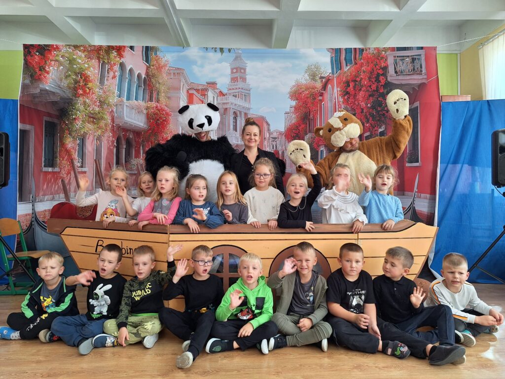 W dniu 21.10.2025 r. dzieci uczestniczyły w przedstawieniu teatralno-muzycznym agencji artystycznej K. Gajewski pt. „Wenecja”. Razem z bohaterami – Tutu i Basem – wyruszyły w niezwykłą podróż po malowniczej Wenecji. Spektakl pełen muzyki, humoru i kolorów bardzo spodobał się naszym przedszkolakom. Z ogromnym zaangażowaniem śpiewały, klaskały i uczestniczyły razem z bohaterami w ich przygodach. Na twarzach wszystkich gościł uśmiech, a w sali panowała radosna atmosfera.