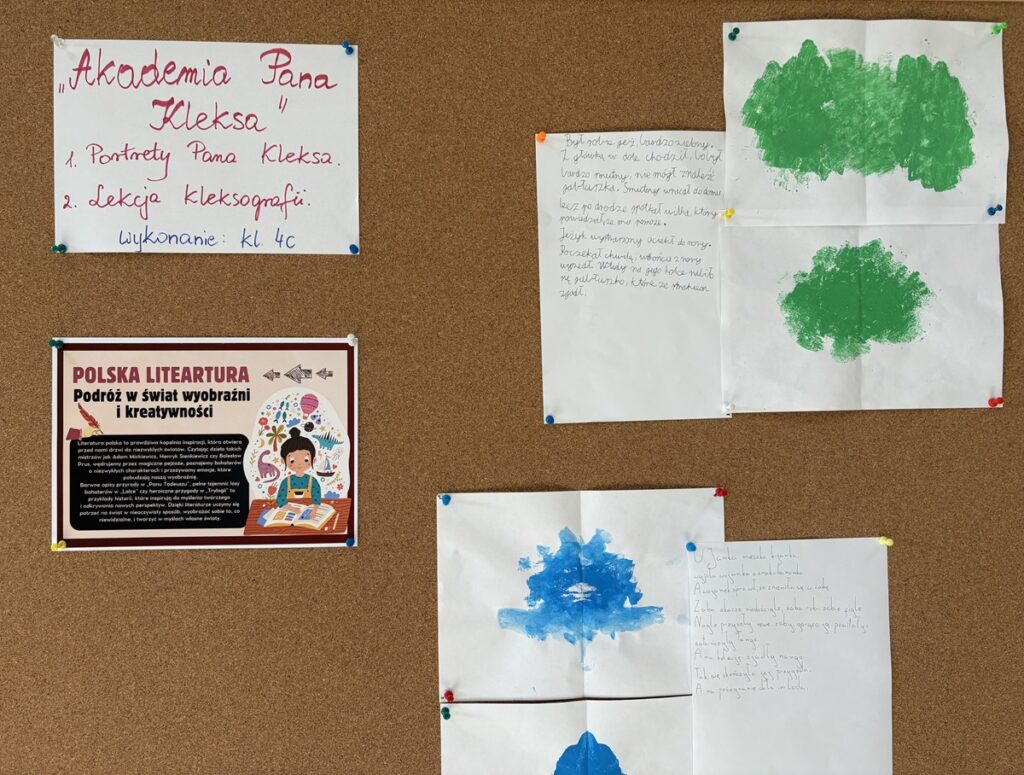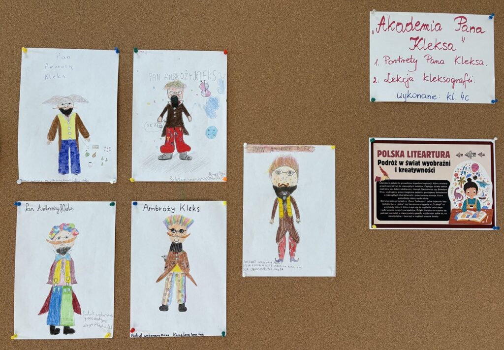 Uczniowie klasy 4c uczestniczyli w ciekawych lekcjach języka polskiego poświęconych lekturze „Akademia Pana Kleksa”. Zamiast tradycyjnych ćwiczeń dzieci budowały własne Akademie z klocków LEGO, rozwijając wyobraźnię i kreatywność. Nie zabrakło też artystycznych wyzwań – uczniowie stworzyli barwne portrety Pana Kleksa, przedstawiając go tak, jak go sobie wyobrazili na podstawie opisu z utworu Jana Brzechwy. Lekcje połączyły naukę z zabawą i pokazały, że literatura może być inspiracją do twórczego działania! Nauczycielka j. polskiego Wioletta Macioszek