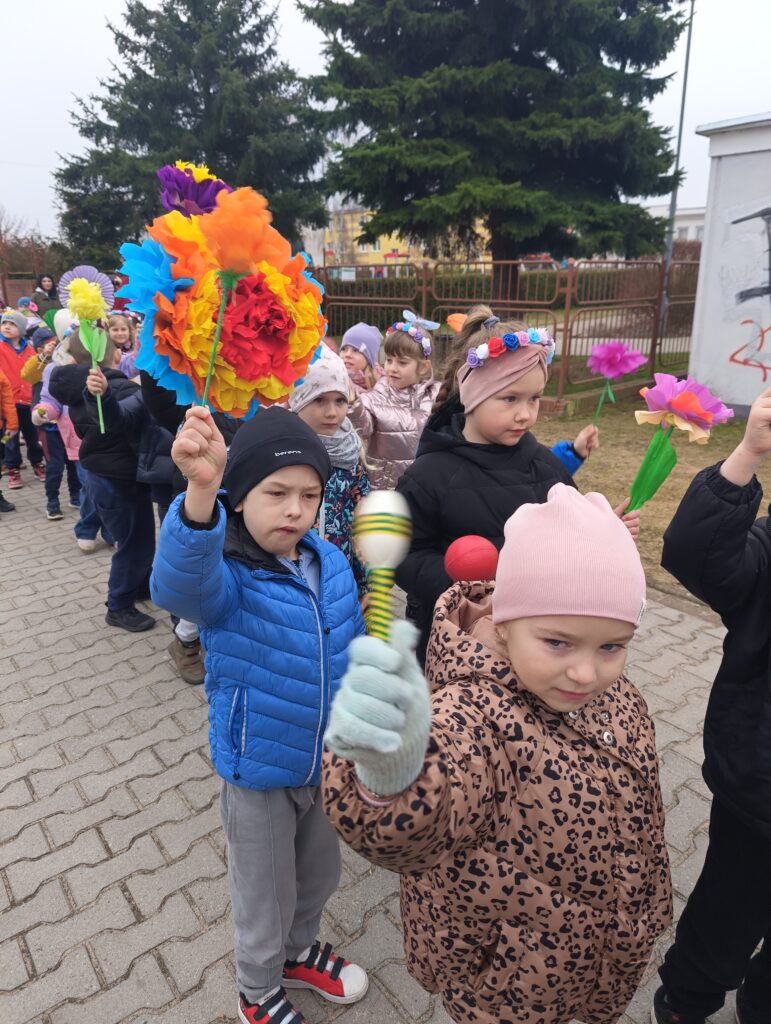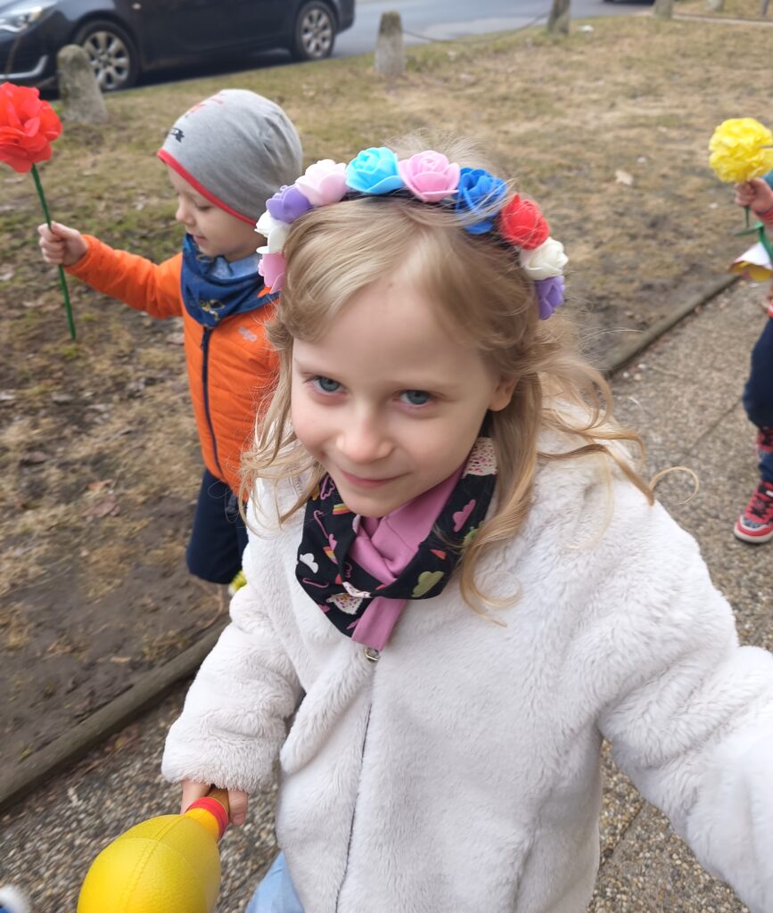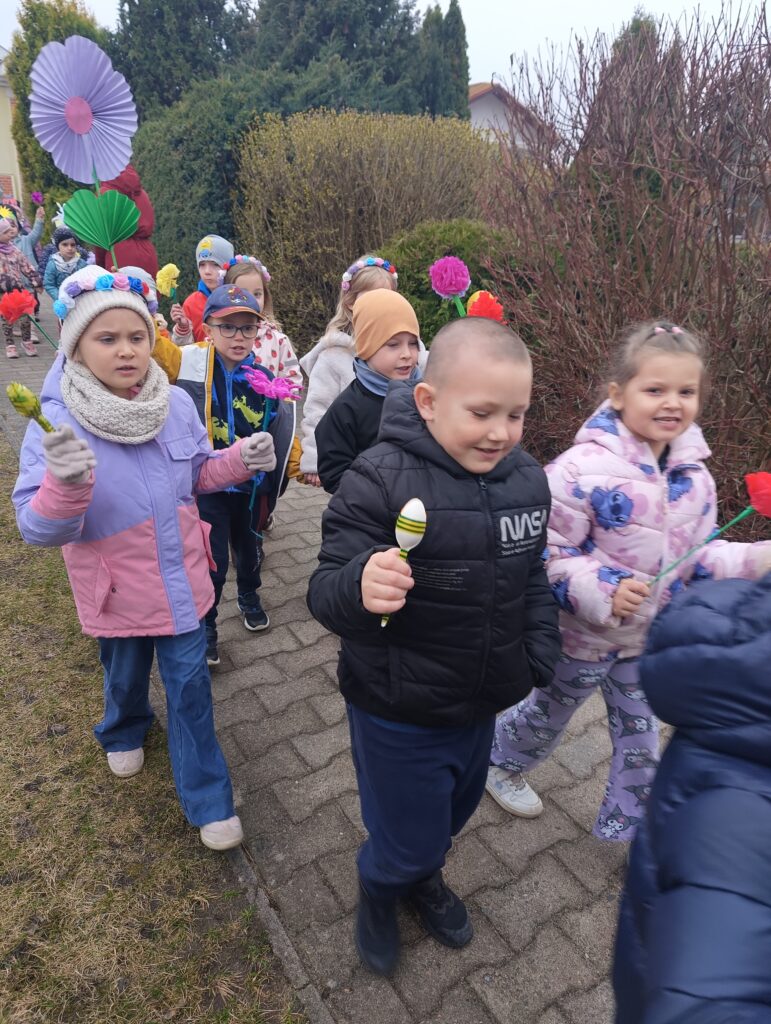 W dniu 20.03.2026 r. w naszym przedszkolu radośnie powitaliśmy pierwszy dzień wiosny. Z tej okazji przedszkolaki wybrały się na spacer po okolicy Przecławia w poszukiwaniu pierwszych oznak nowej pory roku. Dzieci śpiewały wiosenne piosenki, niosły własnoręcznie wykonane, kolorowe kwiaty z bibuły oraz symbolicznie przeganiały zimę. Wszyscy z ogromnym zaangażowaniem wypatrywali oznak budzącej się do życia przyrody. Po powrocie czekała na nas kolejna atrakcja – pierwsze wiosenne ognisko. Dzieci wspólnie piekły kiełbaski, a następnie odbyła się ich degustacja. Wszystkim bardzo smakowało! To był dzień pełen radości, uśmiechu i wspaniałej zabawy, który na długo pozostanie w naszej pamięci.