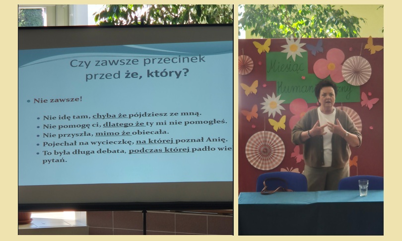 W poniedziałek 23 marca w ramach Miesiąca Humanistycznego gościliśmy w naszej szkole panią prof. dr hab. Ewę Kołodziejek, językoznawczynię, wykładowczynię na Uniwersytecie Szczecińskim, wiceprzewodniczącą Rady Języka Polskiego przy Prezydium Polskiej Akademii Nauk.