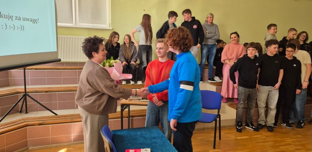 Pani Profesor wygłosiła dla uczniów klas ósmych bardzo ciekawy wykład pt. „Mój przyjaciel przecinek”. Podczas interesującej prelekcji prof. Ewa Kołodziejek w przystępny sposób omówiła zawiłe zasady interpunkcyjne i uświadomiła słuchaczom, jak ważne jest stosowanie prawidłowej interpunkcji. Natalia Jóźwiak