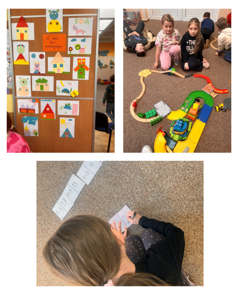 W drugim tygodniu marca świetliczaki rozwijały swoje zdolności matematyczne. Rozwiązywały zadania matematyczne dostosowane do wieku, poznawały figury geometryczne i rozwiązywały krzyżówki.