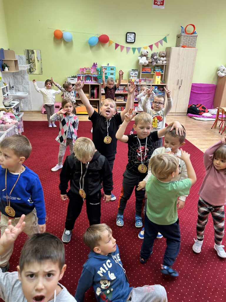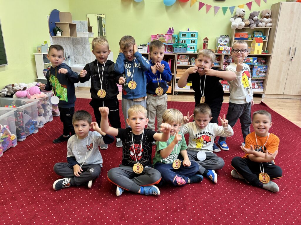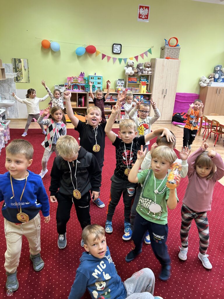 W oddziale przedszkolnym w Przecławiu grupa „Zające” świętowała Dzień Chłopaka. Każdy z chłopców otrzymał z tej okazji pamiątkowy złoty medal, który wywołał wiele radości i uśmiechów. Nie zabrakło również słodkiego poczęstunku, wspólnych zabaw tanecznych oraz dobrego humoru, dzięki czemu dzień był wyjątkowy i pełen wrażeń.