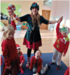 Rodzice z grupy „Zające” zamienili się w aktorów i przedstawili tradycyjne „Jasełka bożonarodzeniowe”. Podczas występu zaprezentowali swoją opowieść o narodzinach Jezusa, oprawioną wieloma kolędami i pastorałkami. Piękna scenografia oraz stroje były idealnym dopełnieniem całego przedstawienia. Można było poczuć magię nadchodzących Świąt!