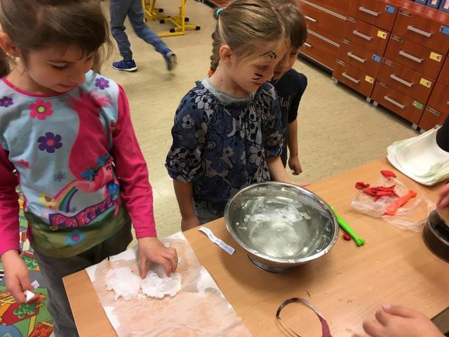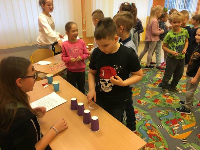 W listopadzie uczniowie z klas 3,,d” i 3 ,,e” gościli u siebie w klasach panie z Robótkowa. Pod kierunkiem specjalistek dzieci miały zajęcia pt. ,,Ekserymenty i inne doświadczenia”. Dzieci nauczyły się m.in. jak włożyć patyk od szaszłyków do środka, balona tak, aby on nie pękł. Zajęcia wzbudziły zaciekawienie i bardzo się podobały.