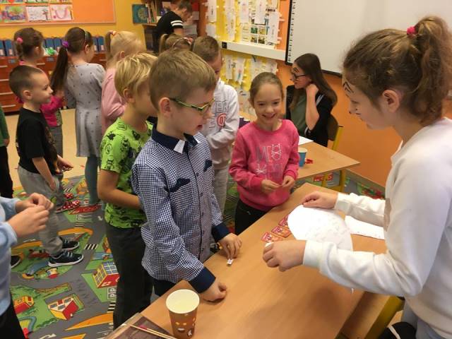 Jedną z tradycji naszej szkoły są wróżby andrzejkowe. W tym roku szkolnym klasa Ib zaprosiła na tę imprezę uczniów z Passow w Niemczech. Po miłym powitaniu i zabawach integracyjnych, uczniowie wzięli udział w zabawach muzycznych oraz plastycznych prowadzonych metodą Edukacji przez Ruch. W wyniku działań plastycznych powstały czarodziejki, które miały sprawić, aby wróżby się spełniły. We wróżbitów wcielili się uczniowie klasy 6b. Przy stanowiskach przez nich przygotowanych można było dowiedzieć się jaki zawód będziemy wykonywać, co nas czeka w bliższej i dalszej przyszłości. Wiele radości sprawiła zarówno naszym gościom jak i uczniom klasy I b wróżba z ustawianiem butów. Spotkanie, które przebiegało w bardzo wesołej atmosferze zakończyło się przekazaniem upominków i słowami pożegnania i podziękowania wypowiadanymi w języku polskim i niemieckim. więcej »